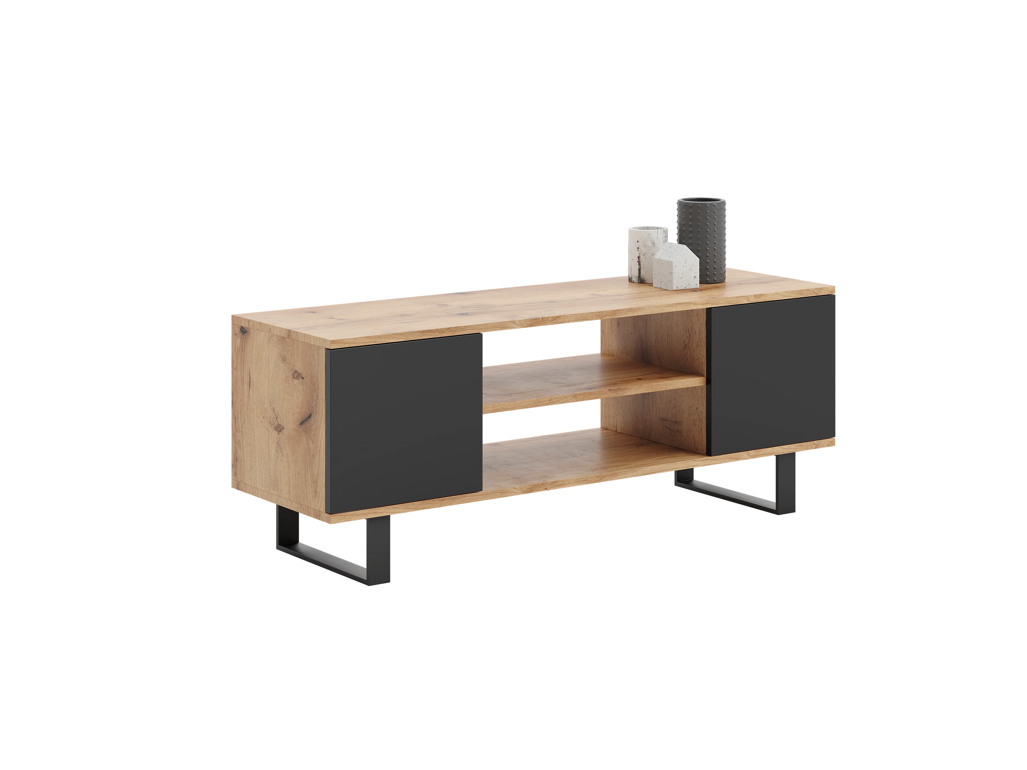 Mueble TV Focus roble dorado - negro, patas de metal estilo loft