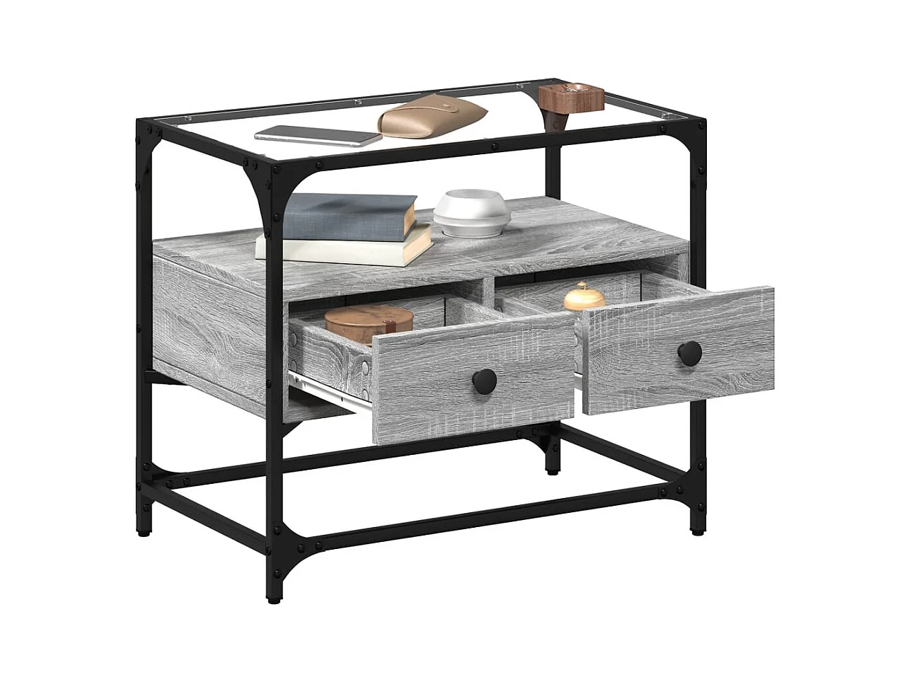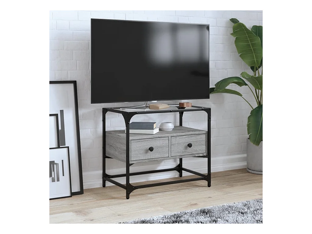 Mueble TV | Gabinete de TV | Mueble de salón cristal y madera ingeniería gris Sonoma 60x35x51 cm