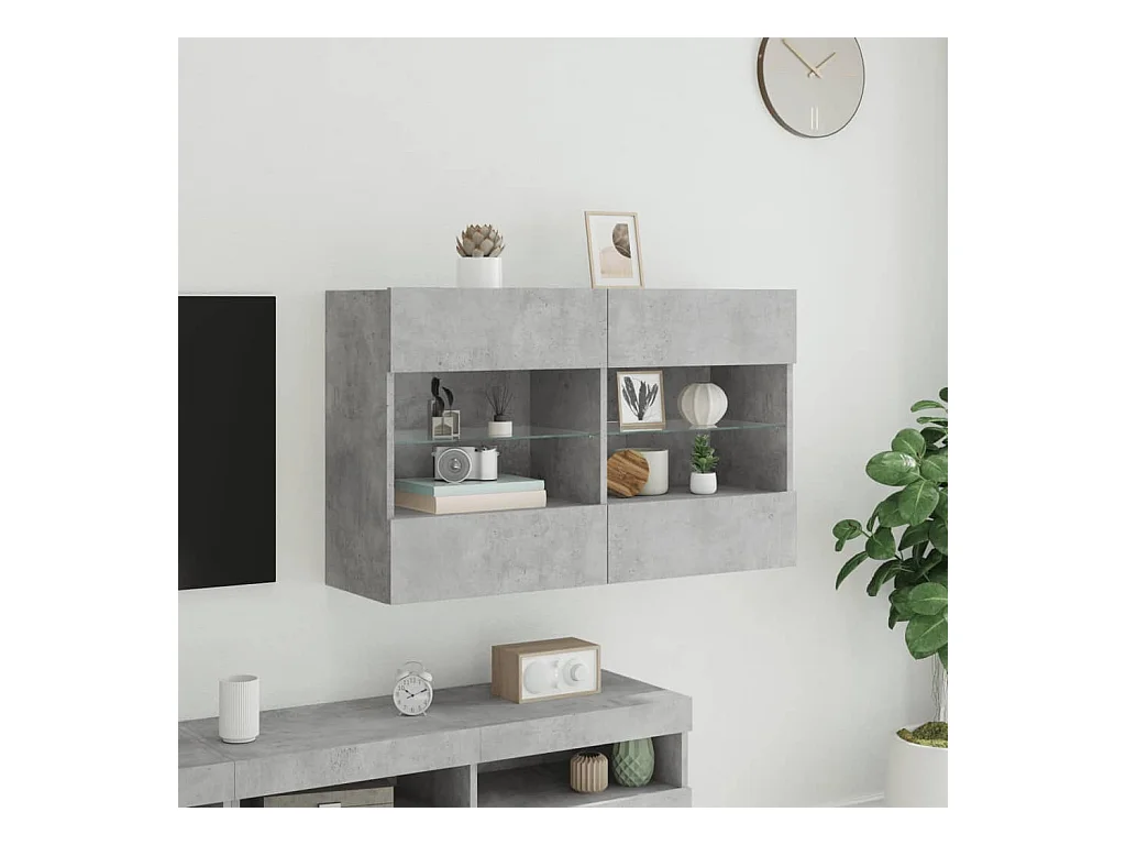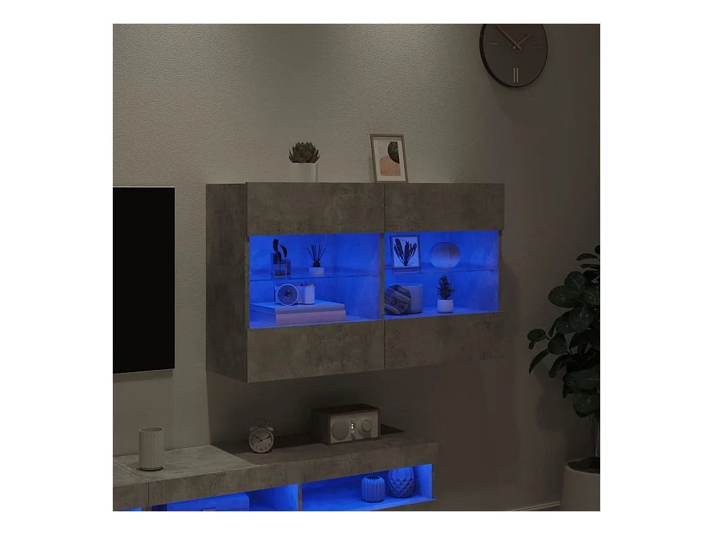 Mueble TV | Gabinete de TV | Mueble de salón de pared con luces LED gris hormigón 78,5x30x60,5 cm