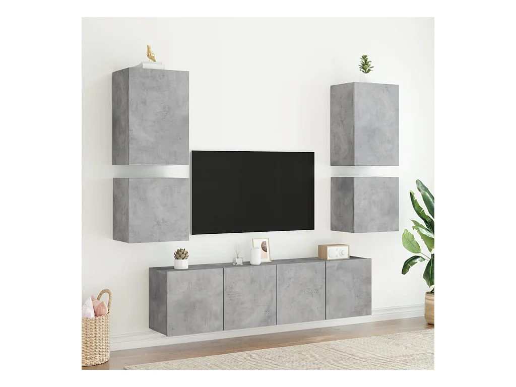 Muebles TV | Gabinetes de TV | Muebles de salón de pared luces LED 2 uds gris hormigón 40,5x35x40 cm