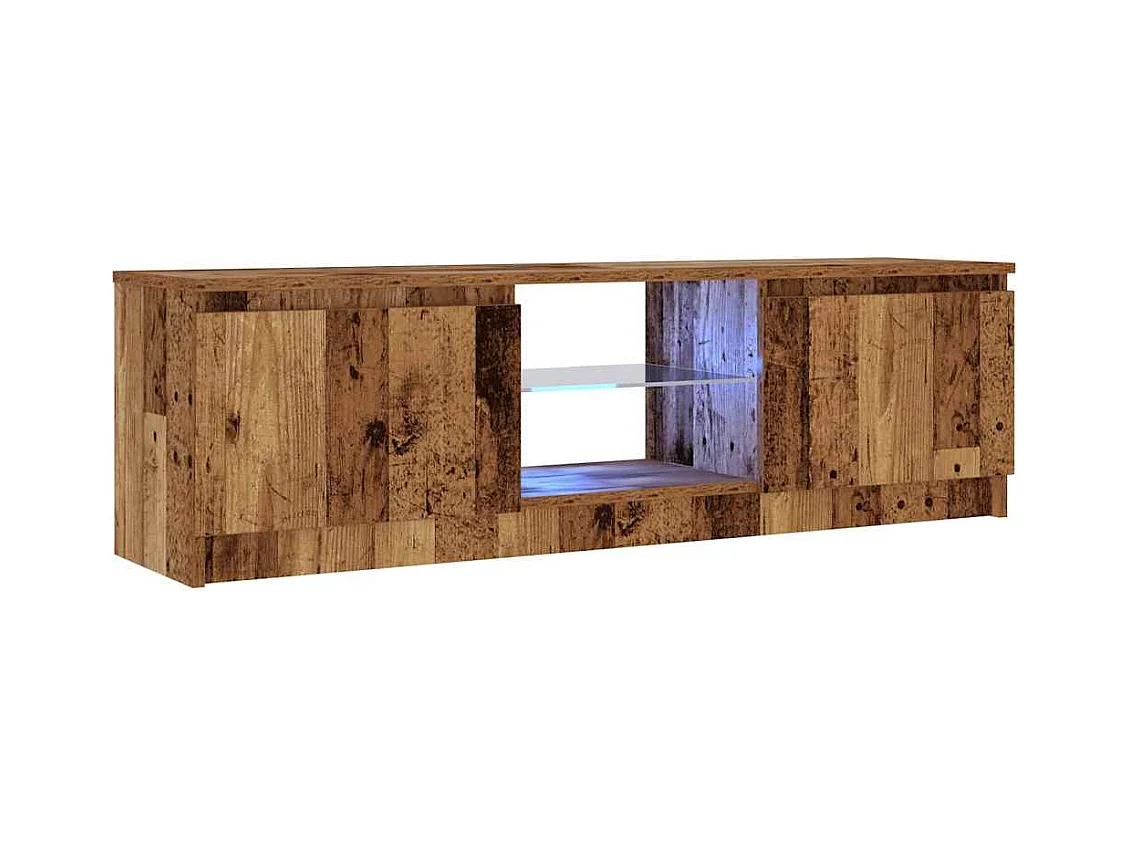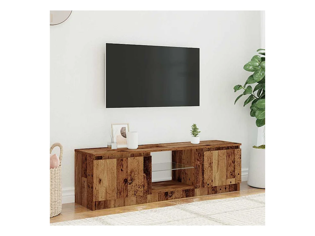 Mueble TV | Gabinete de TV | Mueble de salón luces LED madera ingeniería envejecida 120x30x36 cm