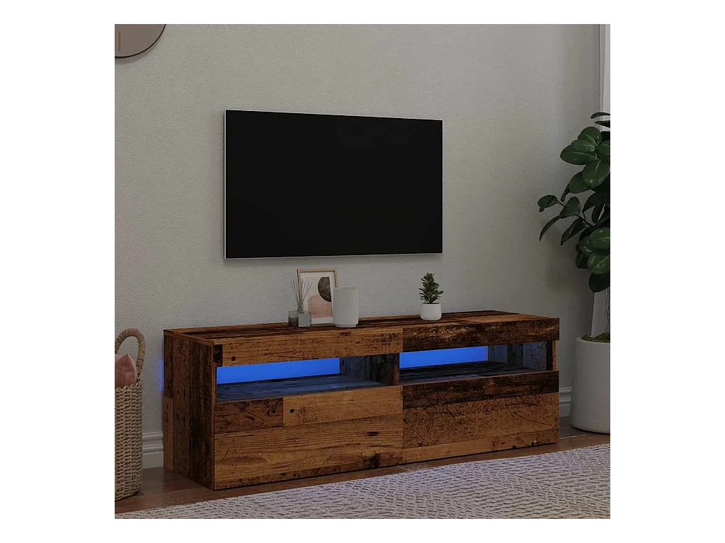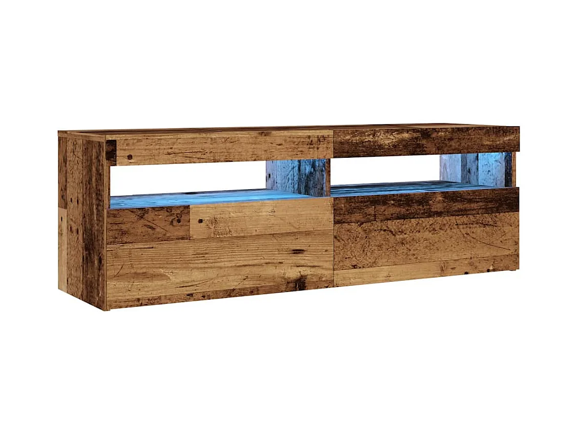 Mueble TV | Gabinete de TV | Mueble de salón luces LED madera ingeniería envejecida 120x35x40 cm