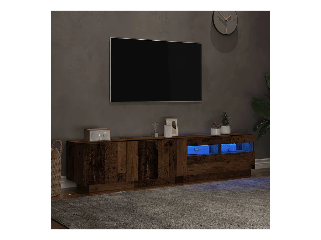 Mueble TV | Gabinete de TV | Mueble de salón luces LED madera ingeniería envejecida 180x35x40 cm