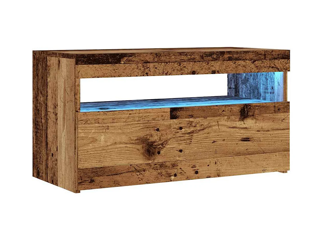 Mueble TV | Gabinete de TV | Mueble de salón luces LED madera ingeniería envejecida 75x35x40 cm