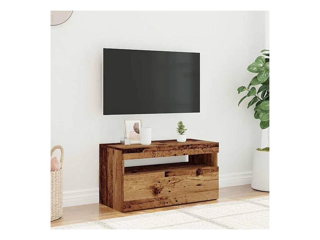 Mueble TV | Gabinete de TV | Mueble de salón luces LED madera ingeniería envejecida 90x35x40 cm