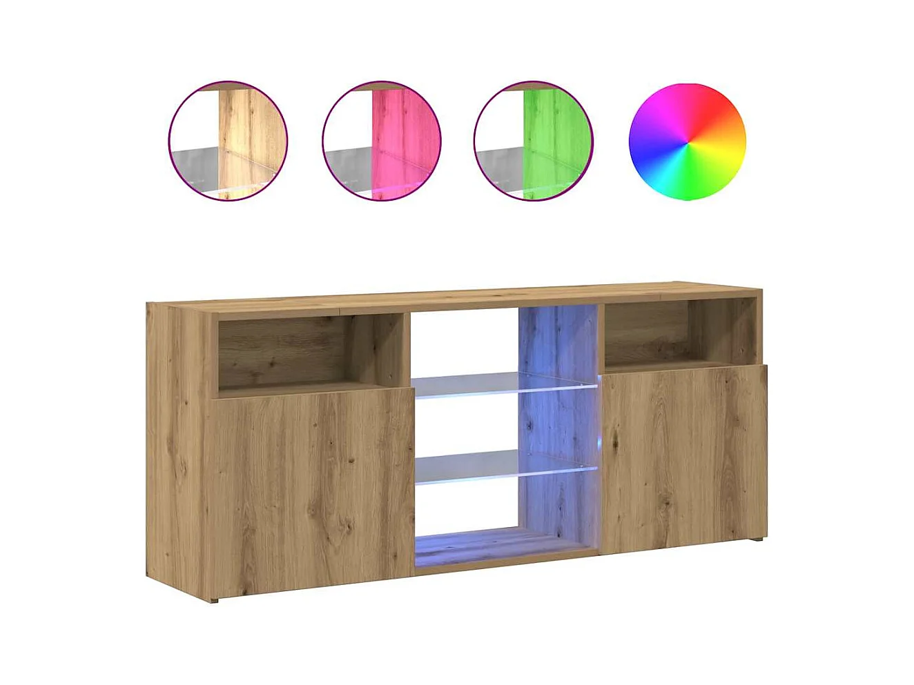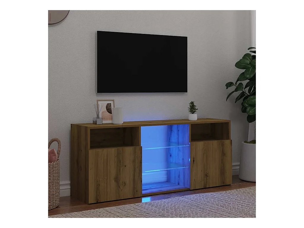 Mueble de TV | Mueble de salón luces LED madera roble artisan 120x30x36 cm