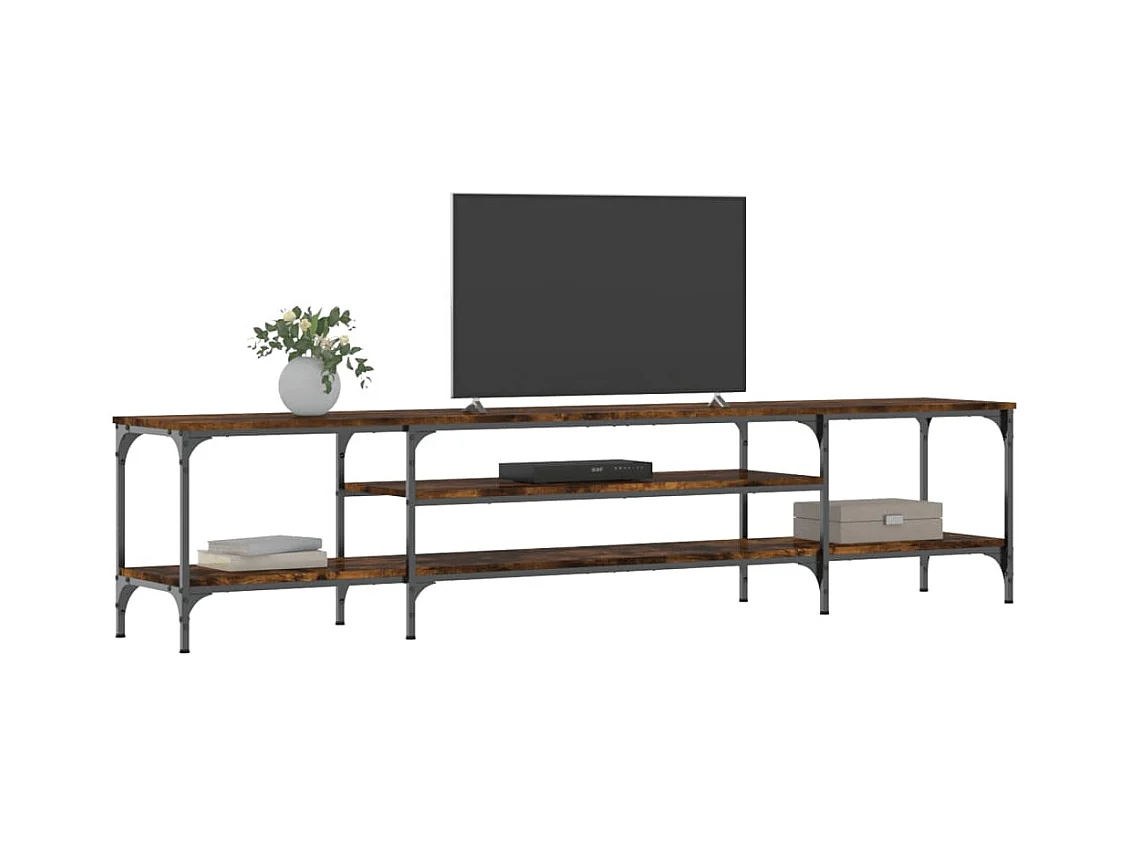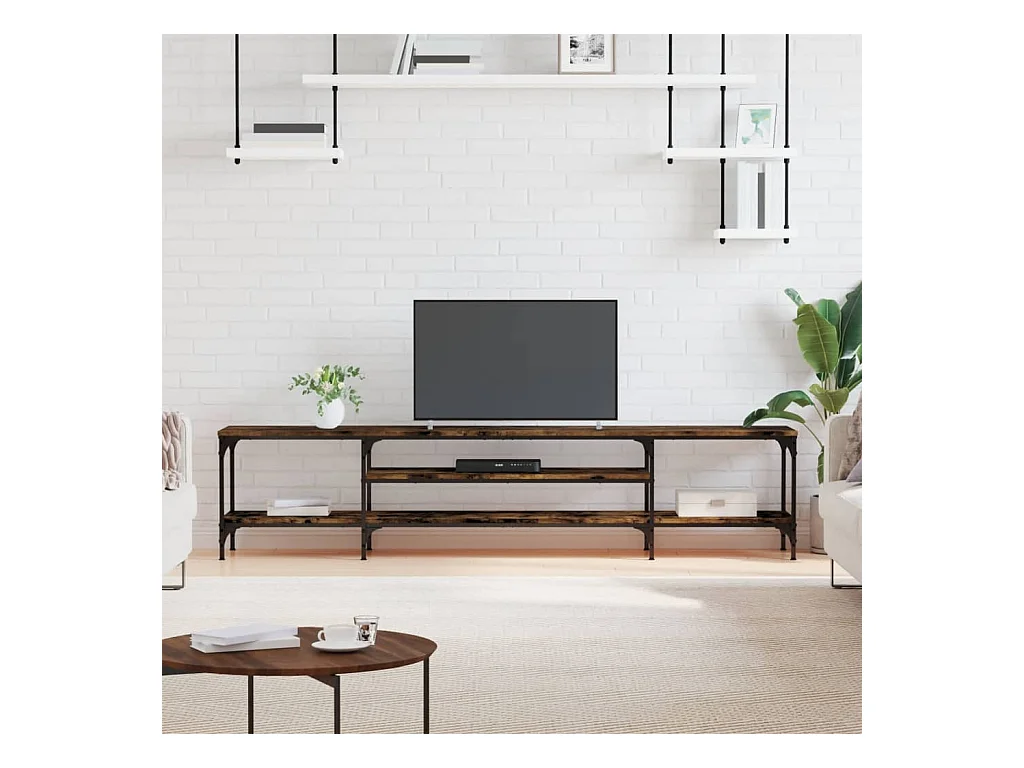 Mueble TV | Gabinete de TV | Mueble de salón madera ingeniería y hierro roble ahumado 201x35x45 cm