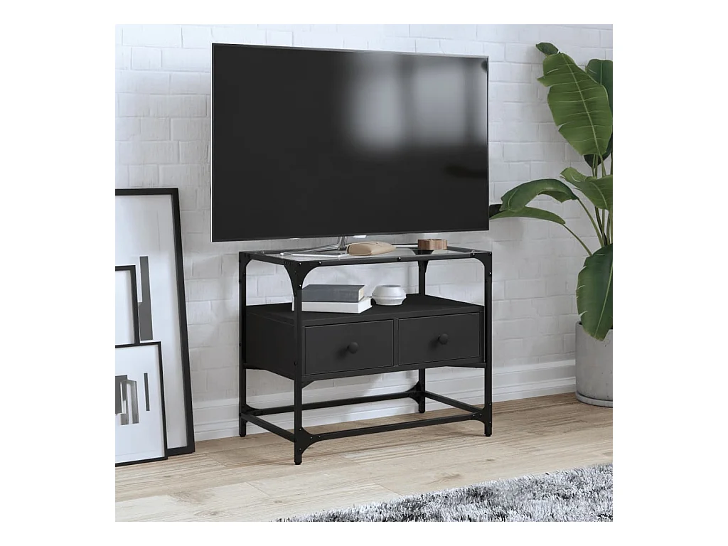 Mueble TV | Gabinete de TV | Mueble de salón cristal y madera ingeniería negro 80x35x51 cm