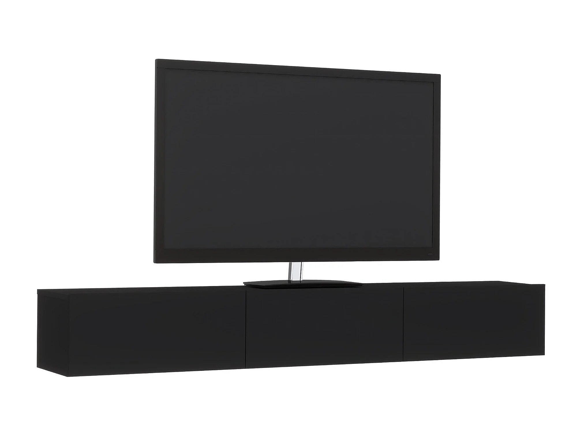 Mueble de TV moderno 180 cm para salón – 2 puertas sin tiradores, acabado mate, de pie o colgante, frentes MDF negro mate
