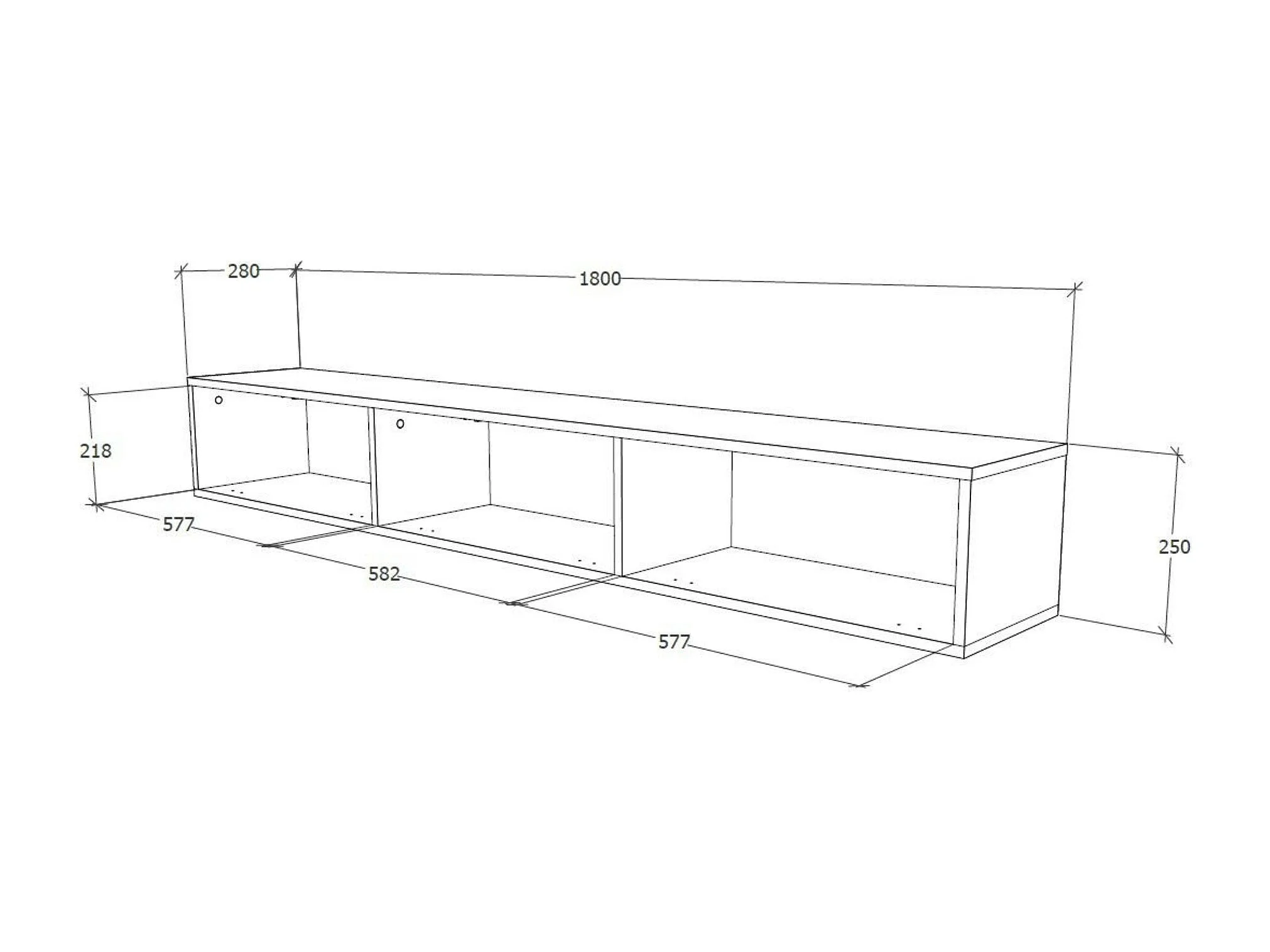 Mueble TV haaus Elba, Negro, 180 x 30 x 25 cm
