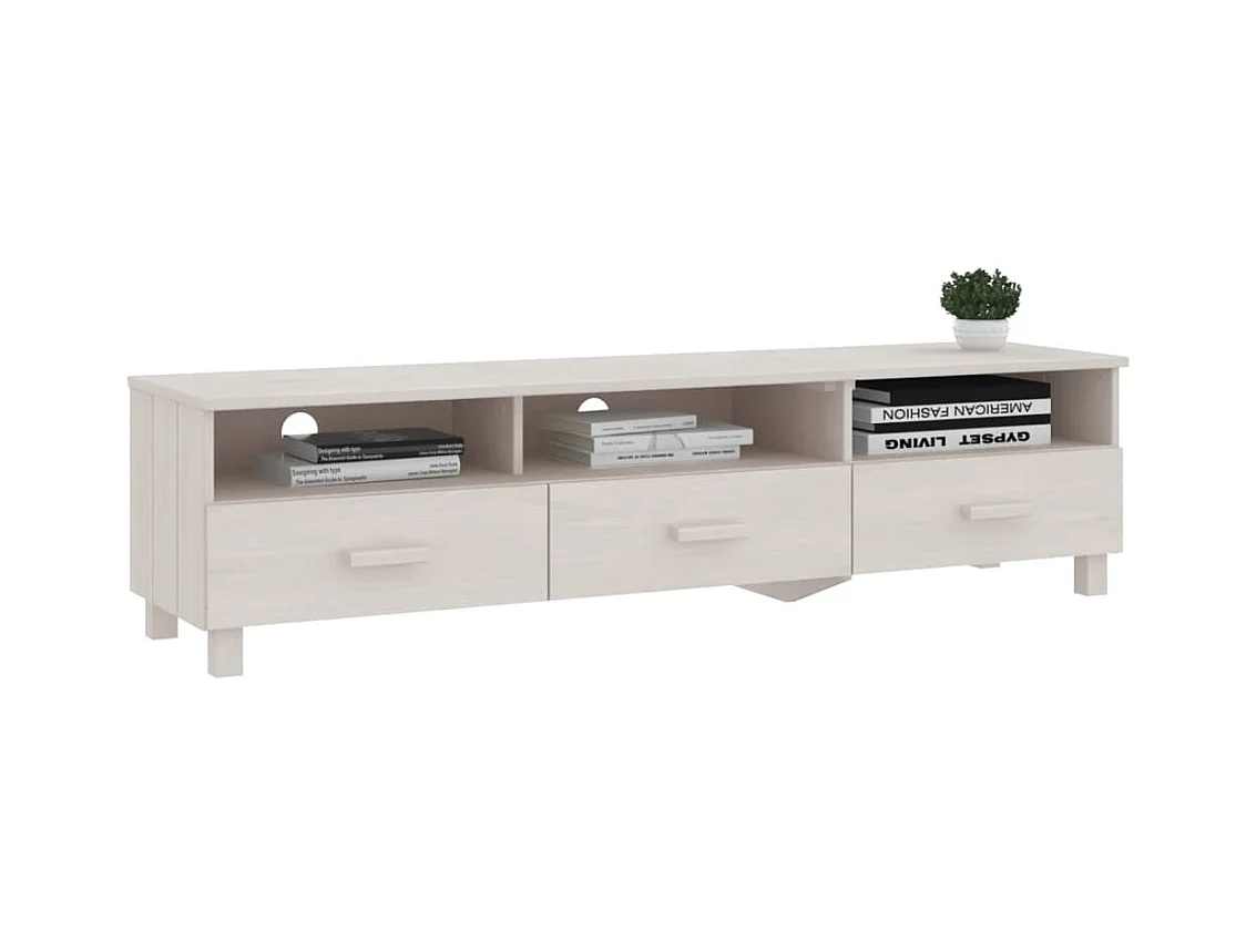 Mueble TV HAMAR Blanco 158x40x40 cm Madera maciza de pino