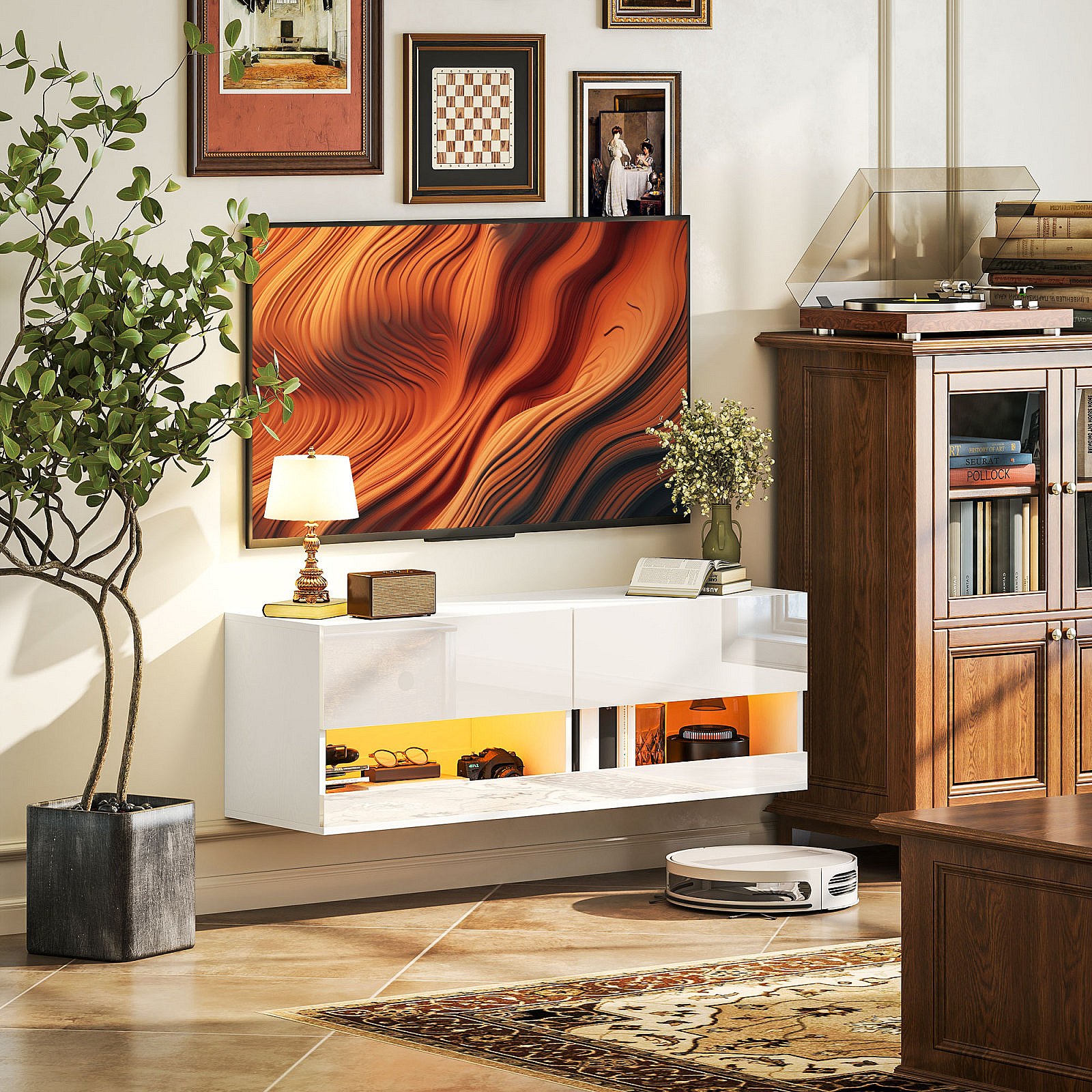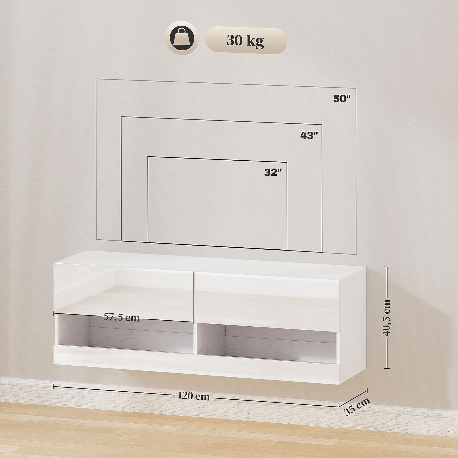 Mueble TV LED 120 x 35 x 40 cm, Mueble TV de Pared Lacado Blanco, para Salón o Dormitorio