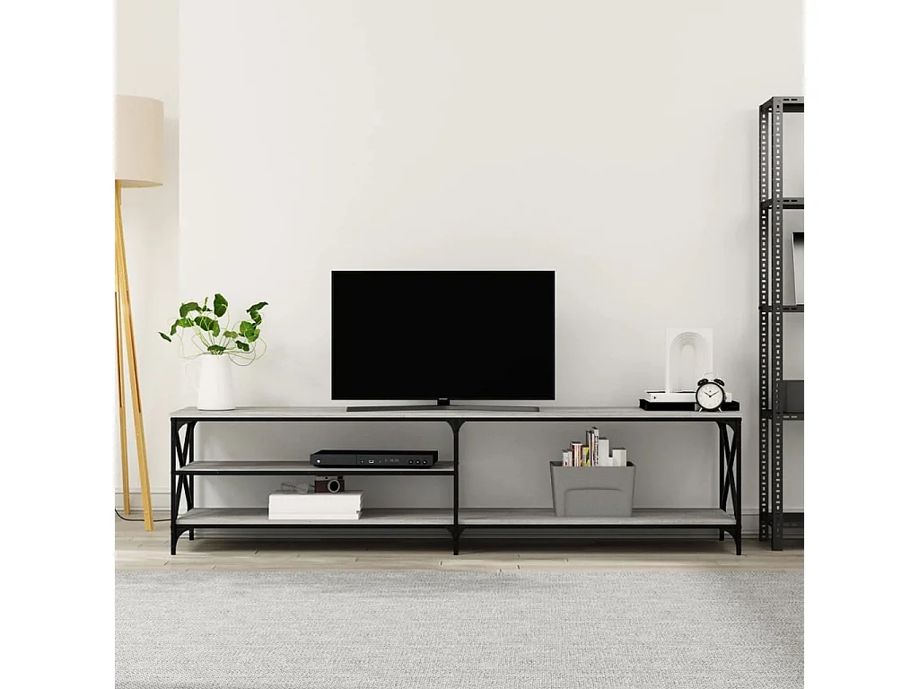 Mueble TV metal y madera contrachapada gris Sonoma 200x40x50 cm