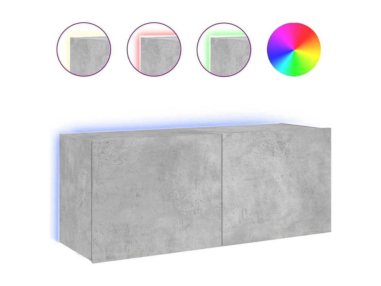 Mueble TV multimedia Estante TV Aparador TV Comedor Salón Dormitorio Montaje en pared con luces LED 100 x 35 x 41 cm Gris 02_0027854