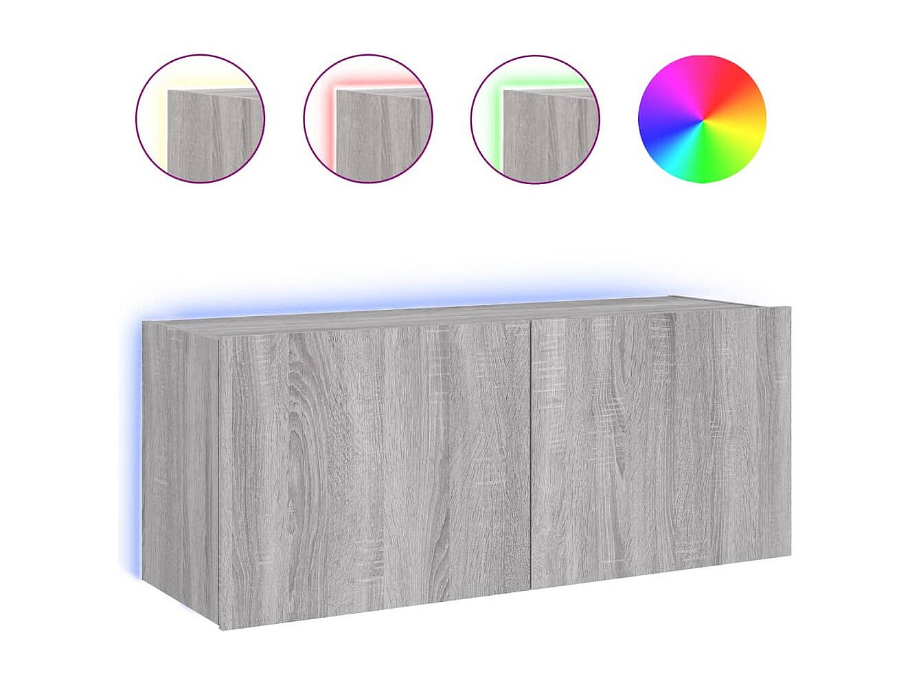 Mueble TV multimedia Estante TV Aparador TV Comedor Salón Dormitorio Montaje en pared con luces LED Sonoma 100 x 35 x 41 cm Gris 02_0028038