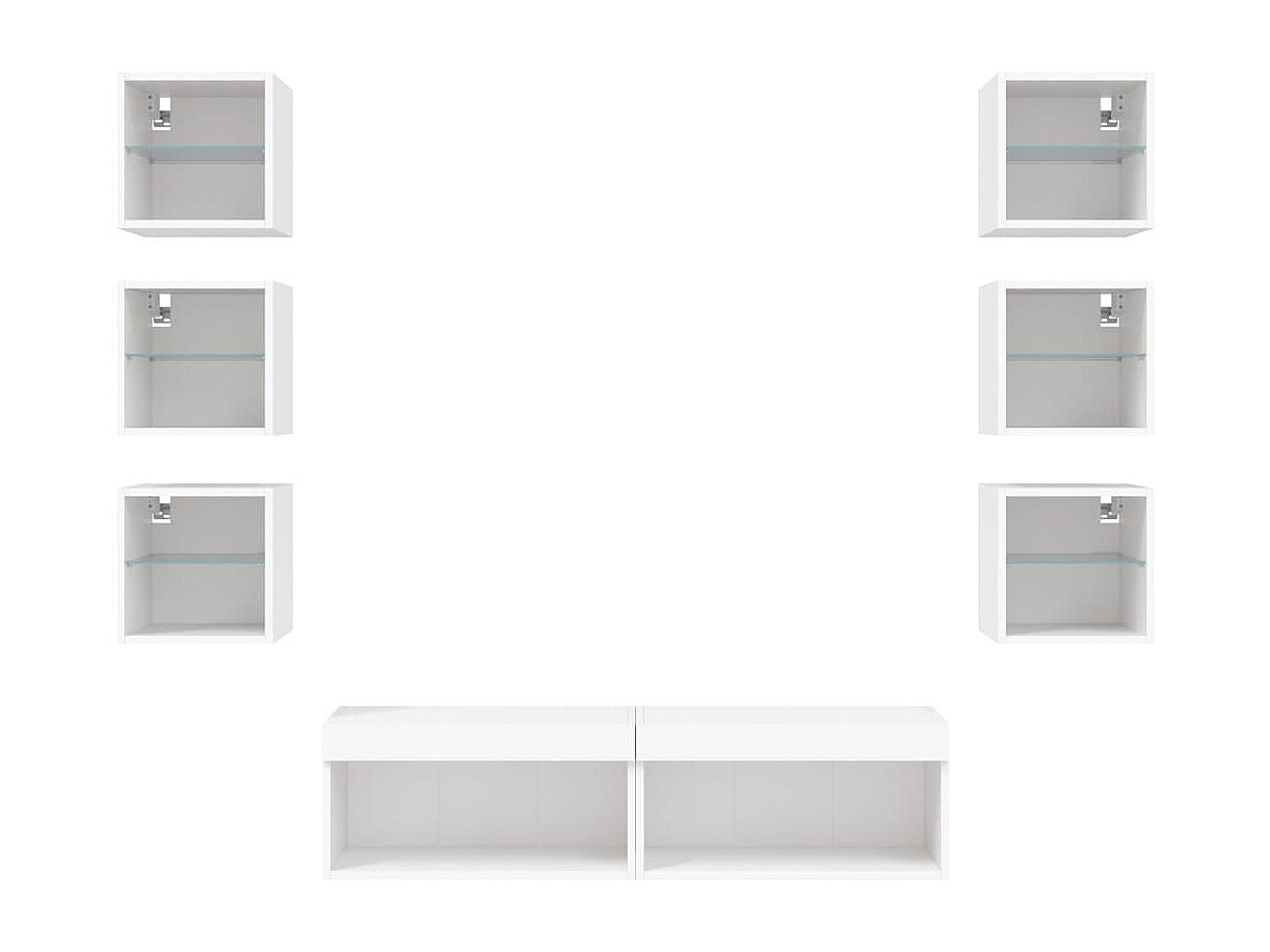 Mueble TV Multimedia Estante TV Buffet TV Comedor Sala Dormitorio con LED 8 Piezas Madera Ingeniería Blanco 02_0029473