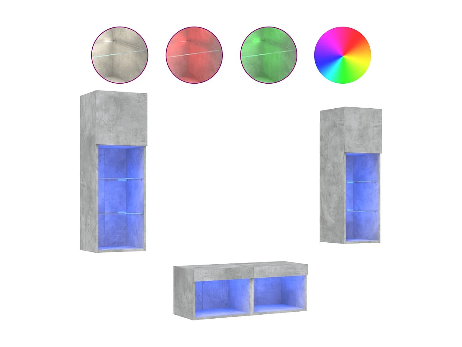 Mueble TV multimedia Estante TV Buffet TV Comedor Sala Dormitorio Montado en la pared x 4 piezas con luces LED gris 02_0028211