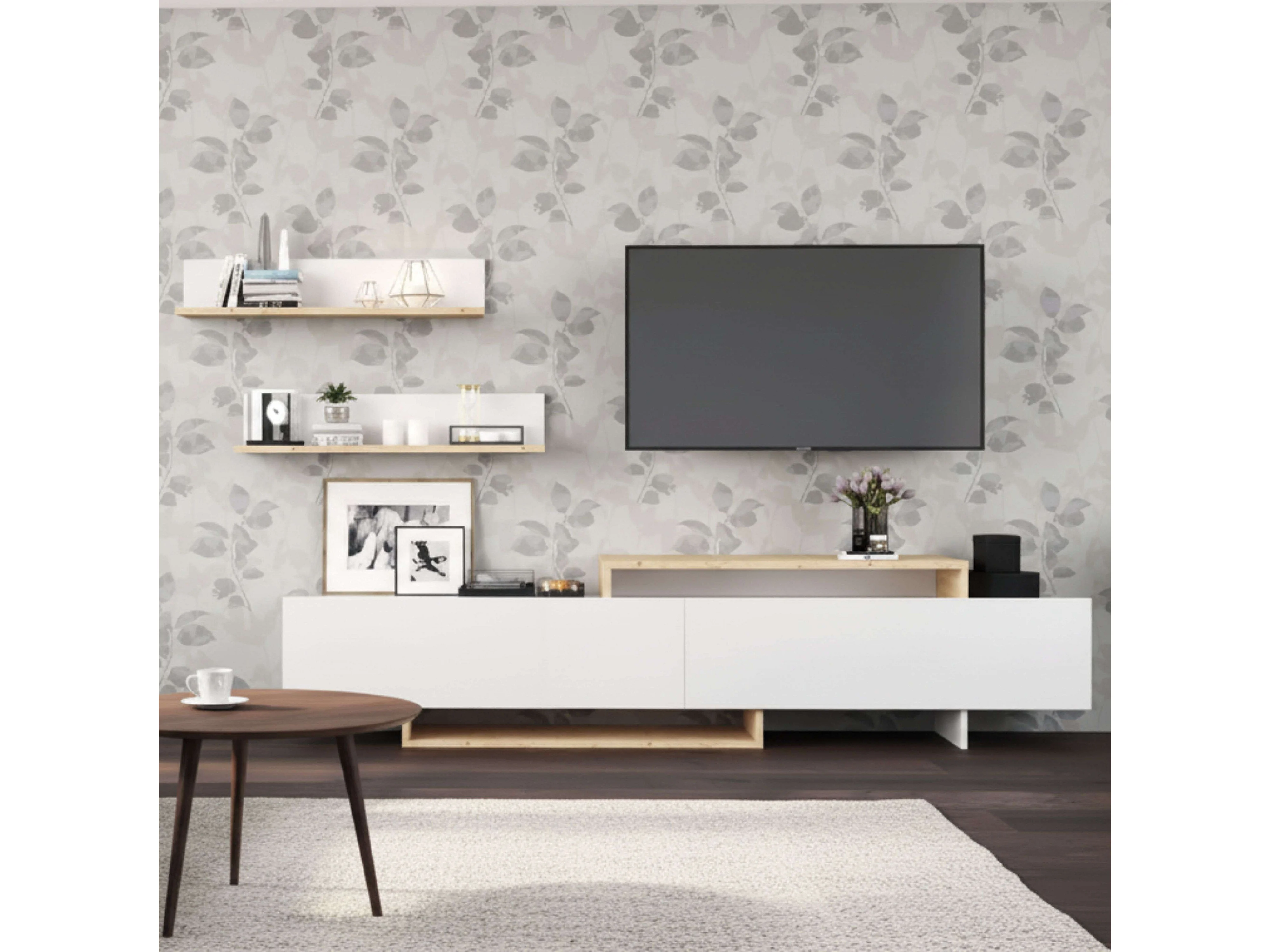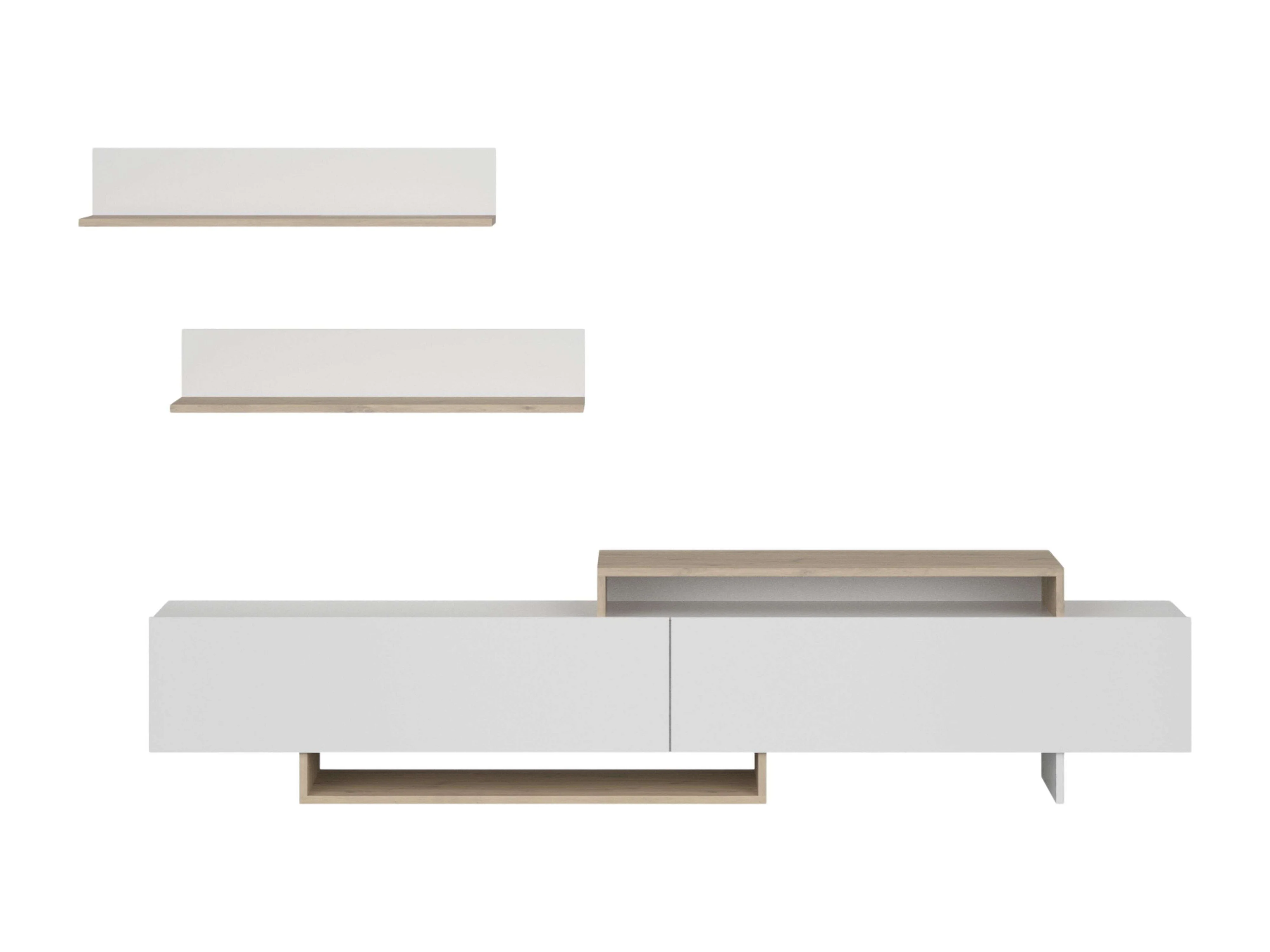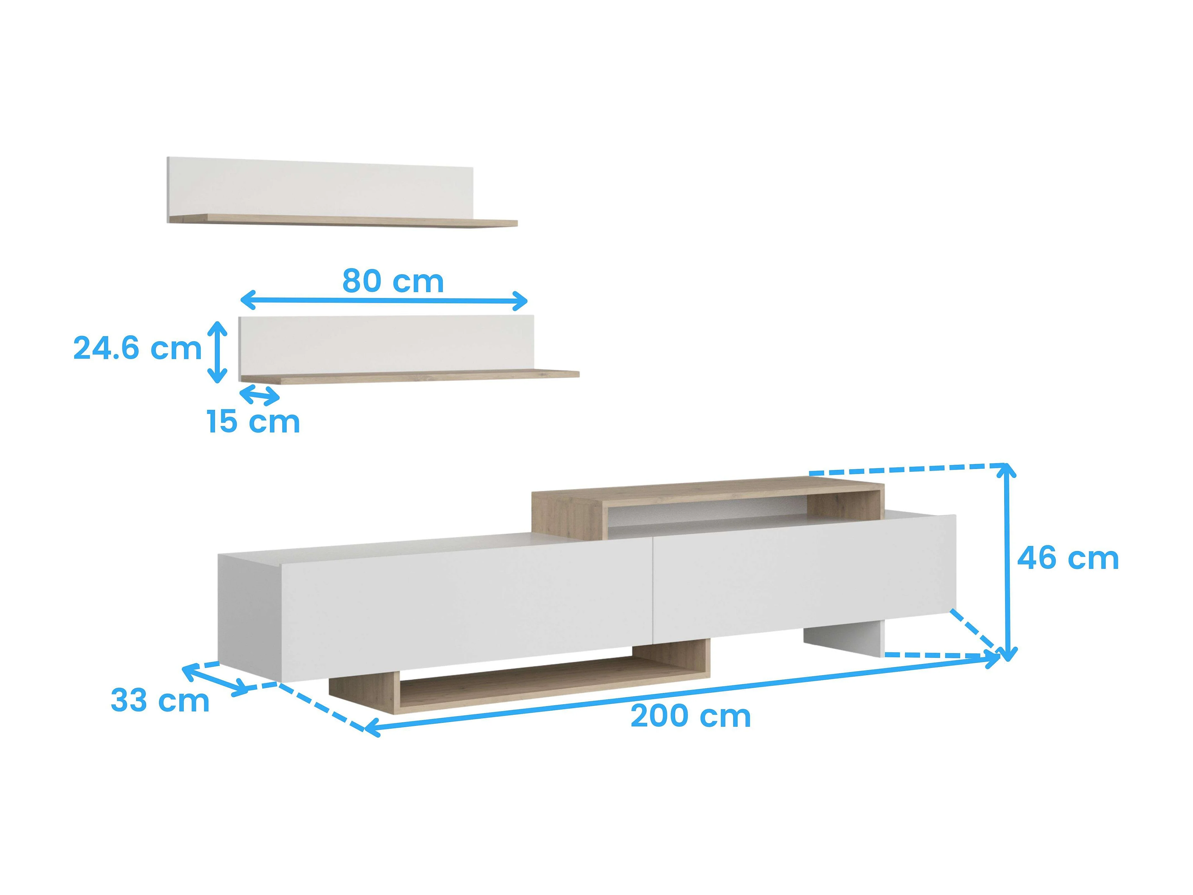 Mueble tv Orlis 2 puertas 2 estantes blanco mate roble artisan 200x46x33 cm