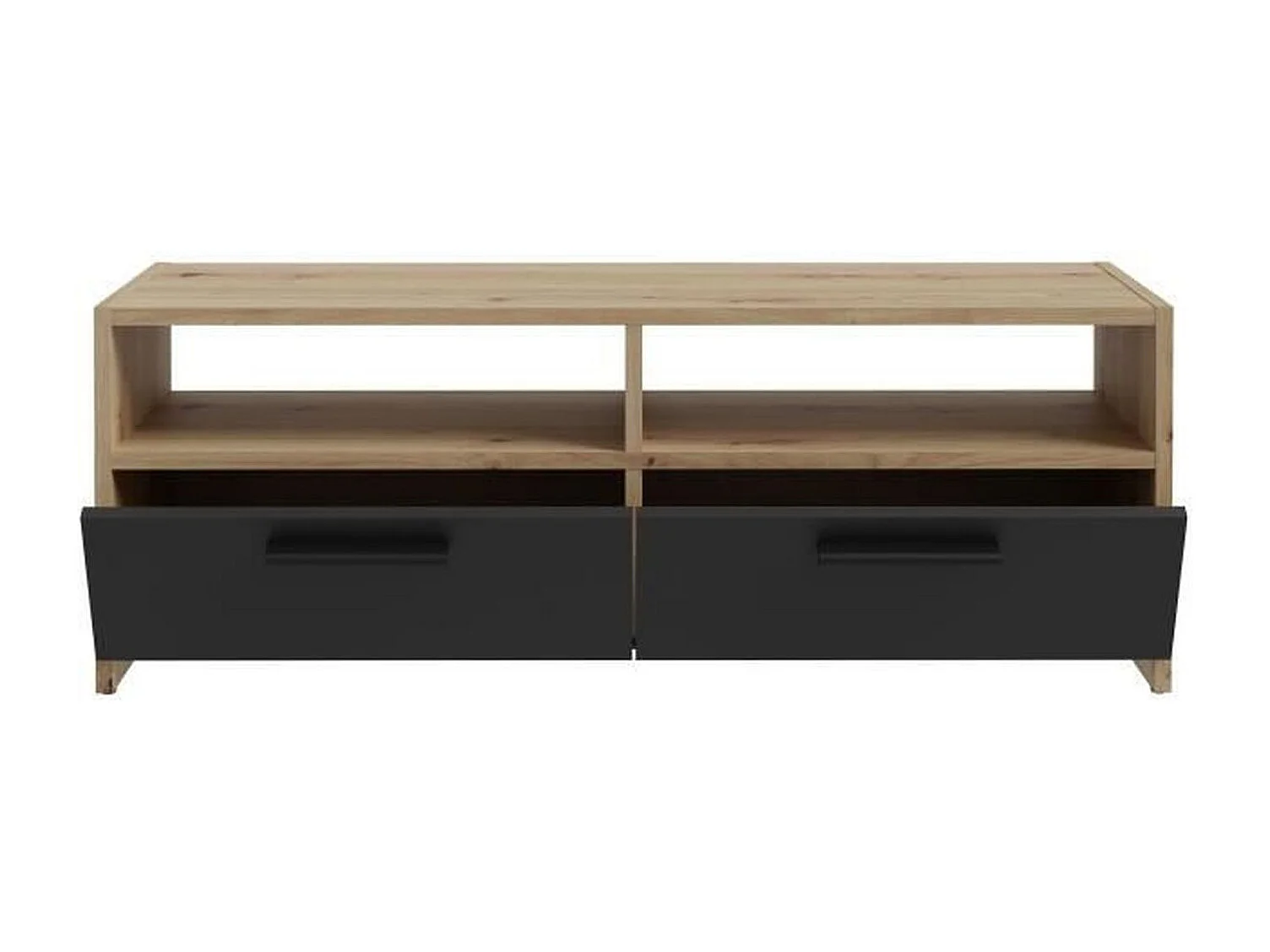 Mueble TV roble y negro - 2 solapas + 2 nichos - 95 x 36 x 34,5 cm