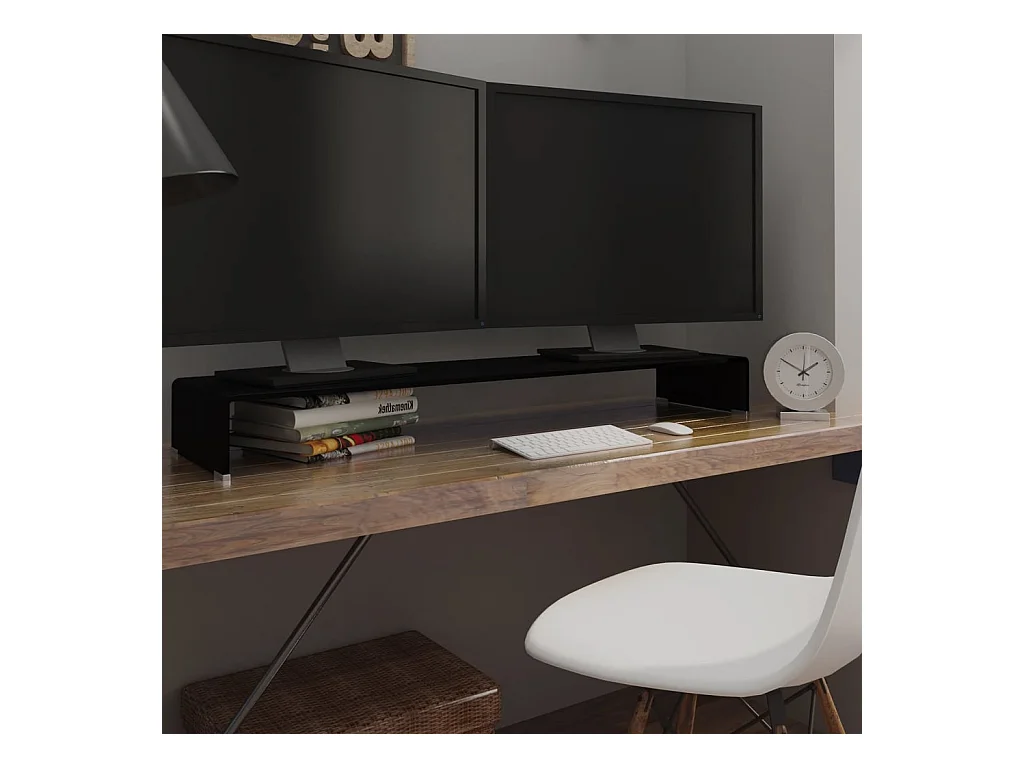 Mueble TV | Soporte para TV/Elevador monitor cristal negro 90x30x13 cm
