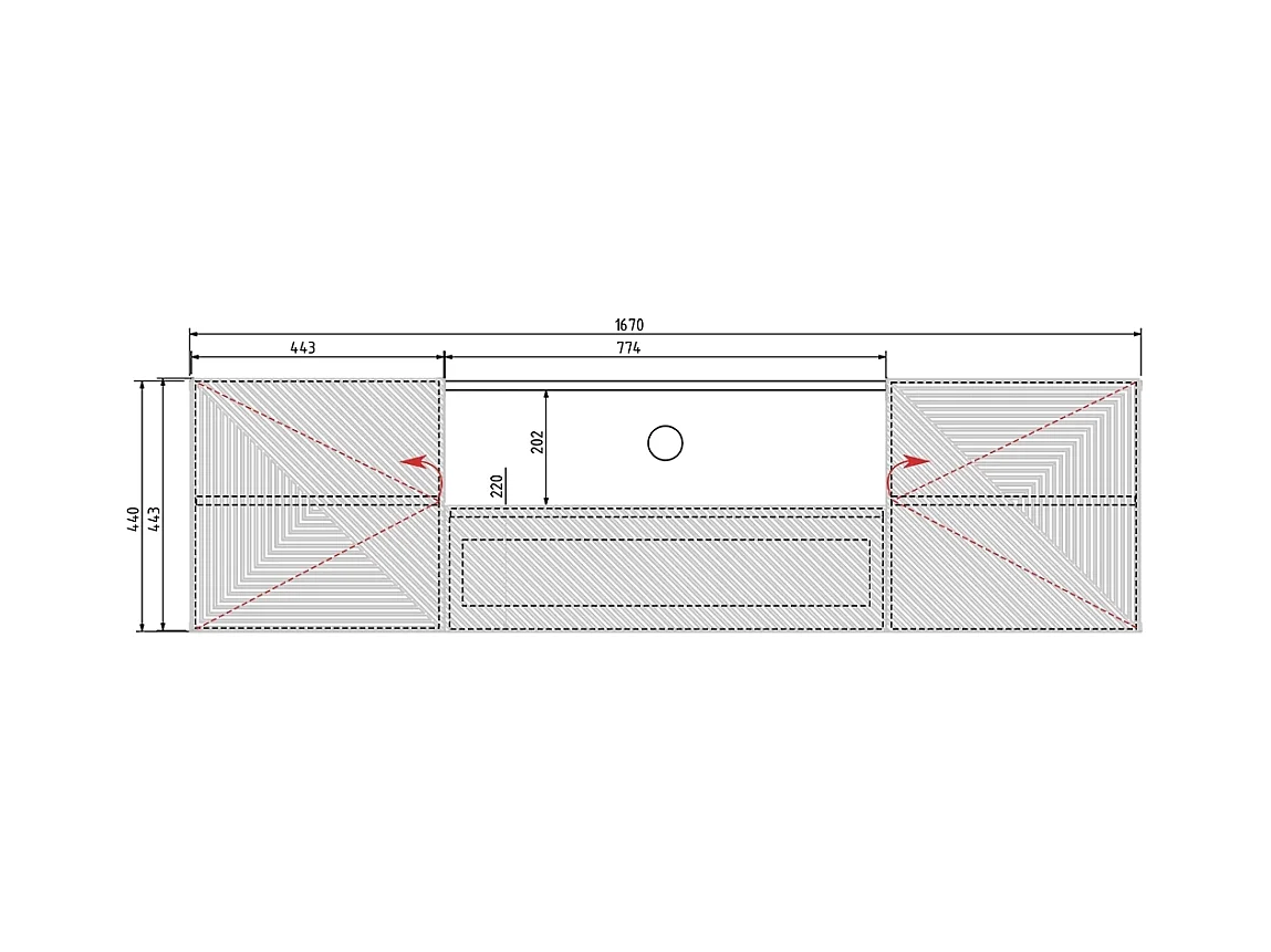 Mueble TV suspendido 2 puertas 1 cajón en madera laminada 167 x 40 cm