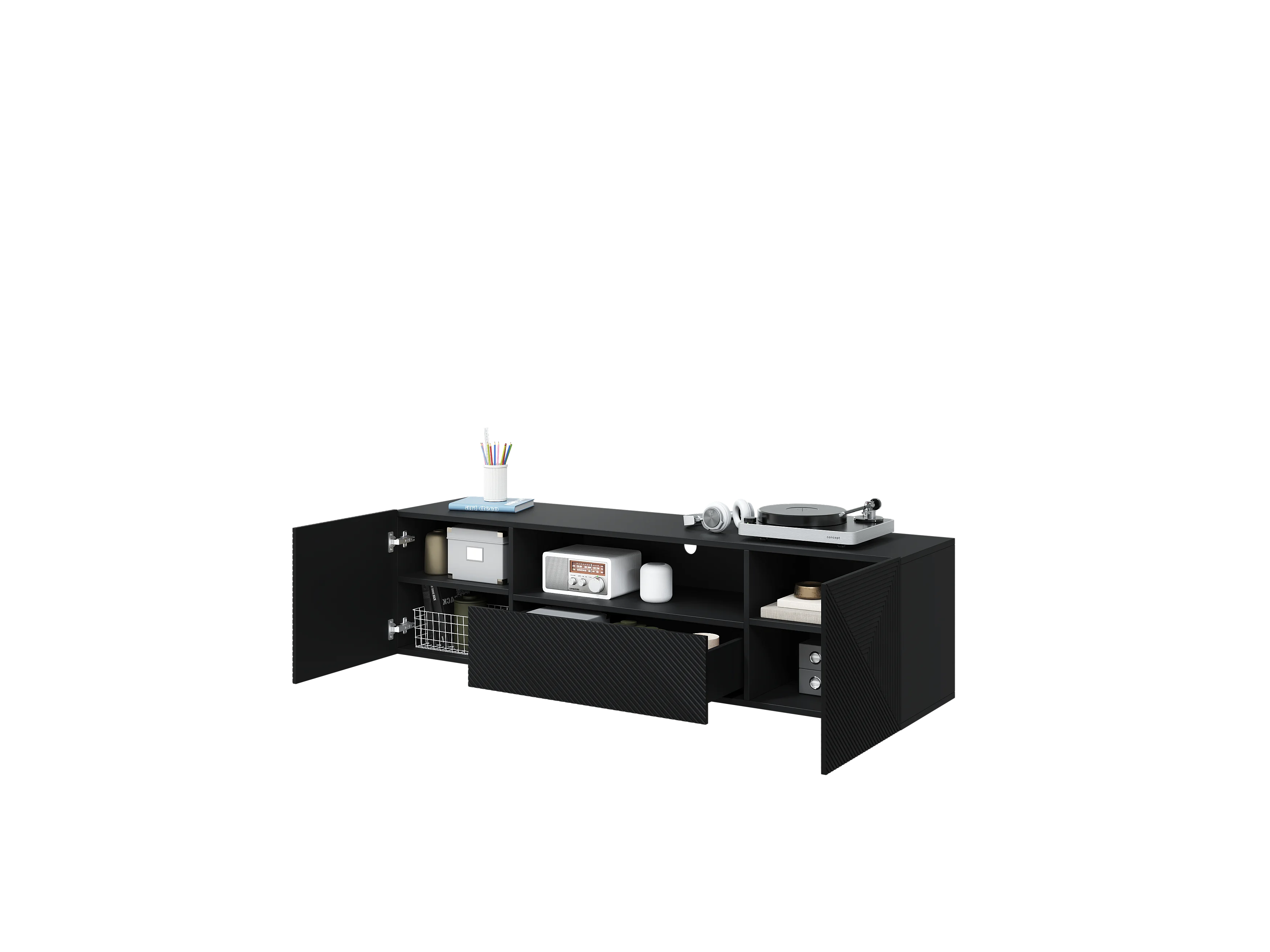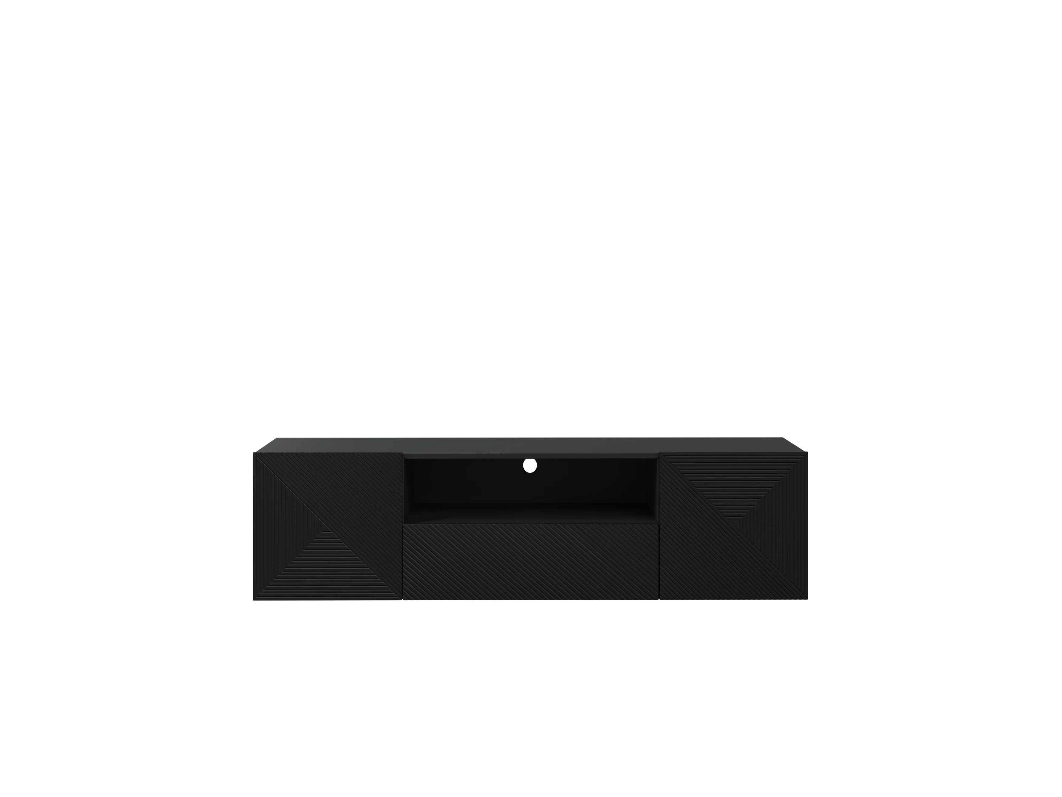 Mueble TV suspendido 2 puertas 1 cajón en madera laminada negra 167x40cm