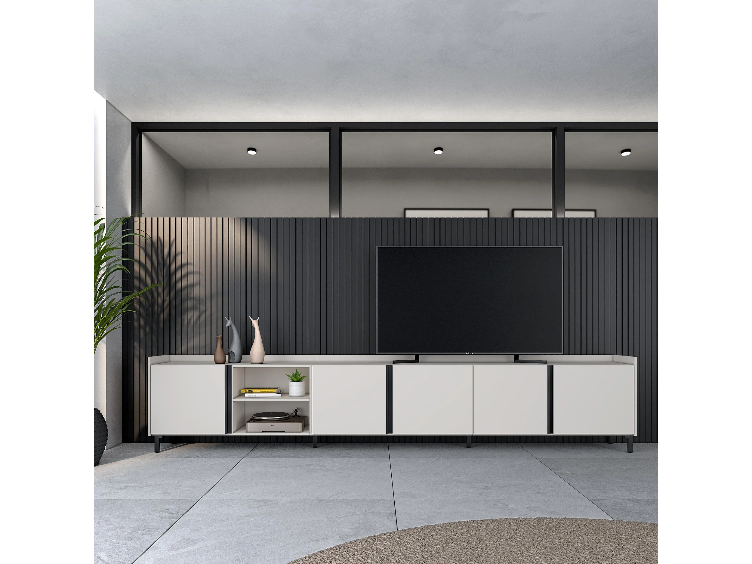Mueble TV, Televisión, 309x61x35 cm, Para TV hasta 80", Diseño industrial, Beige
