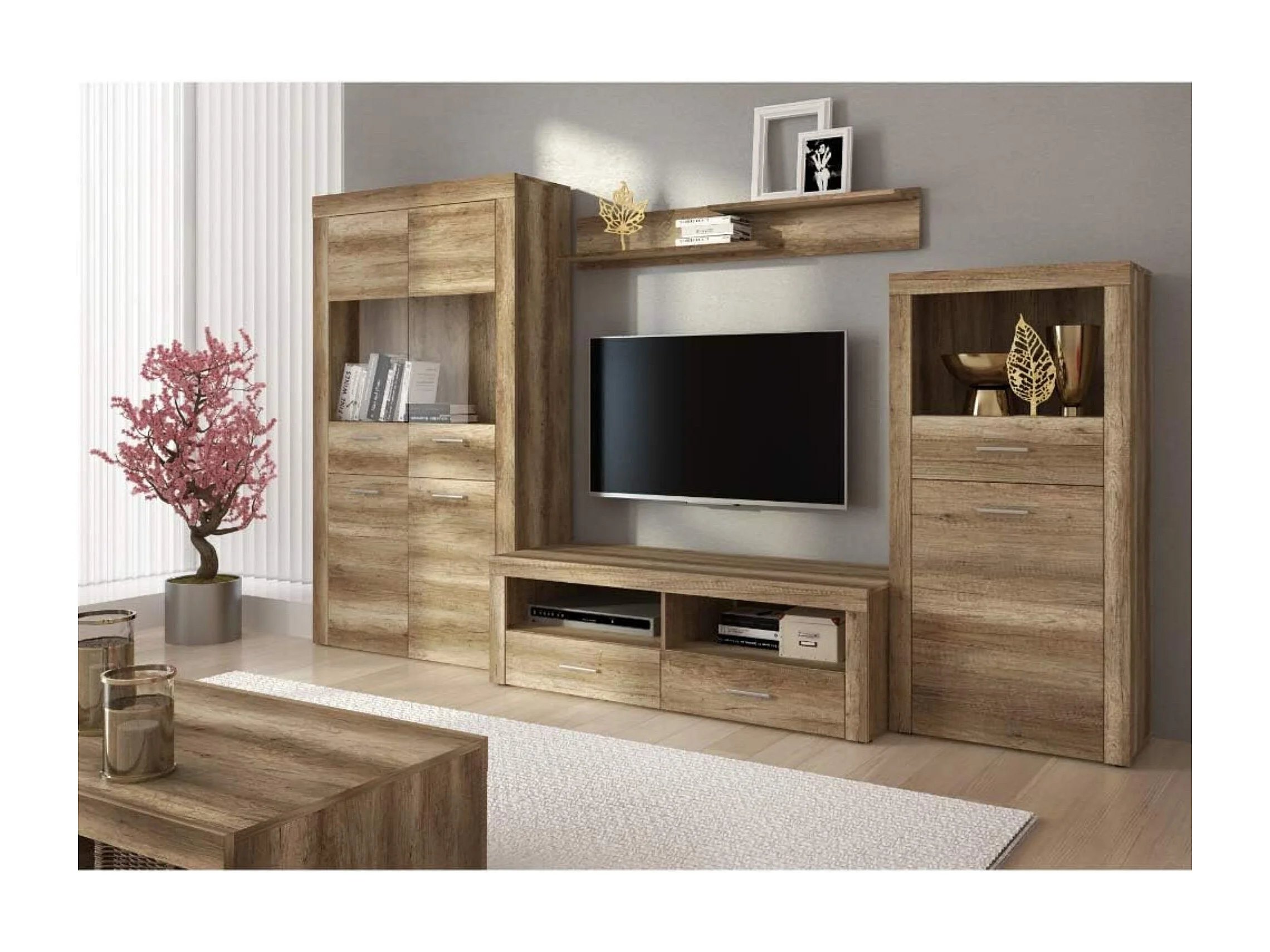 Mueble Vitrina 4 Puertas - Armario Auxiliar Comedor - Acabado Color Cañón - Medidas: Ancho: 100 cm x Fondo: 34,6 cm x Alto: 177 cm