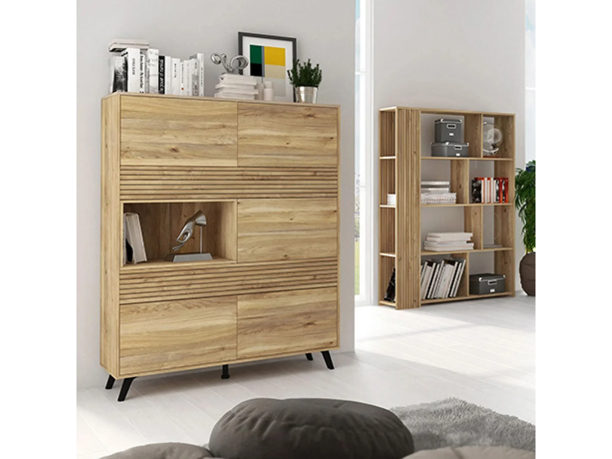 Bodeguero para Salón o Comedor, Práctico y Funcional, Color Cañon, Fácil de Montar, Madera, 135cm (Alto) x 66cm (Ancho) x 34,6cm (Fondo)