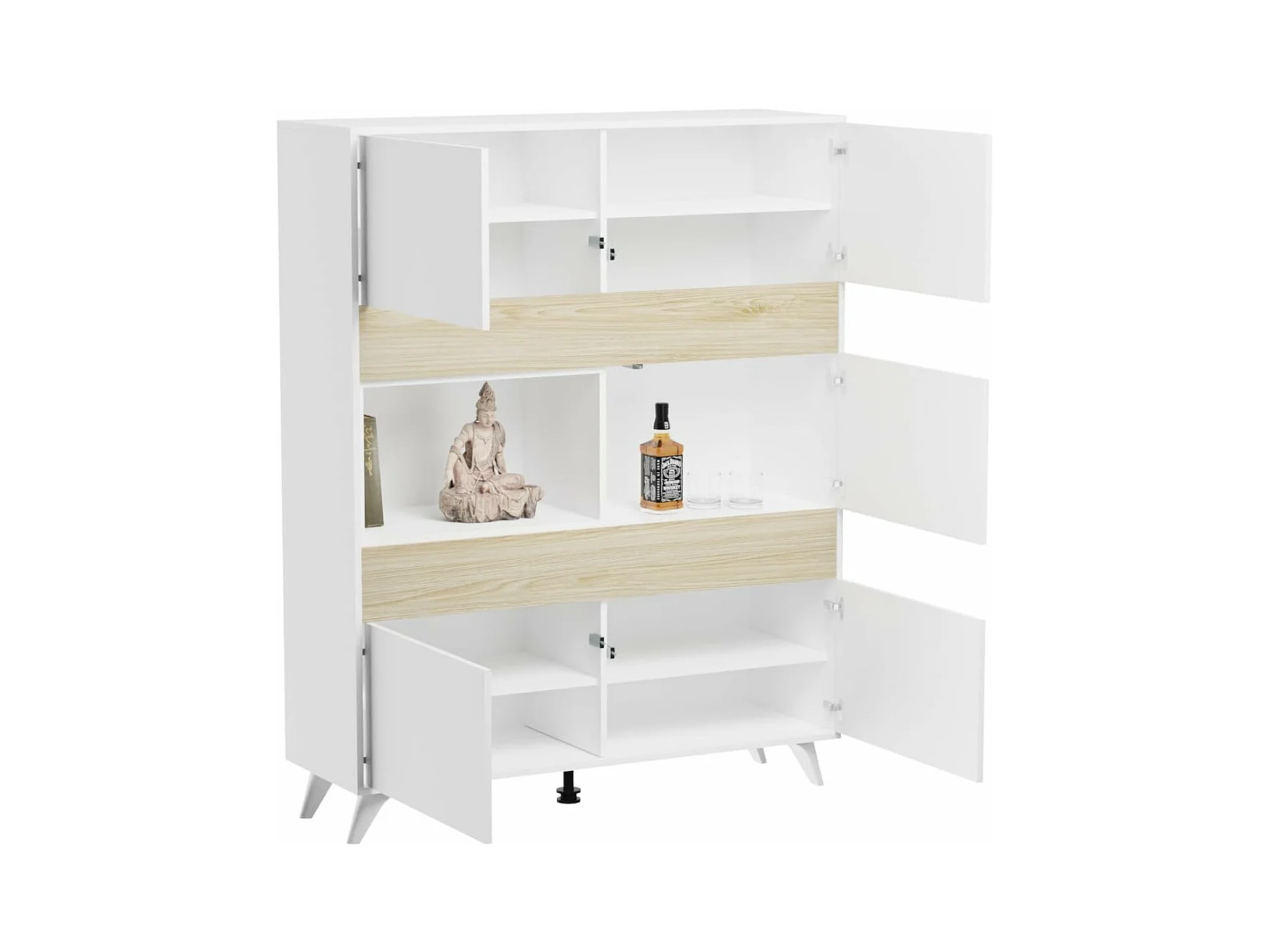Mueble Bar para Salón o Comedor, Aparador de Cocina, Color Blanco-Roble, Medidas: 60 cm (Ancho) x 135 cm (Alto) x 40 cm (Fondo) – Meyvaser