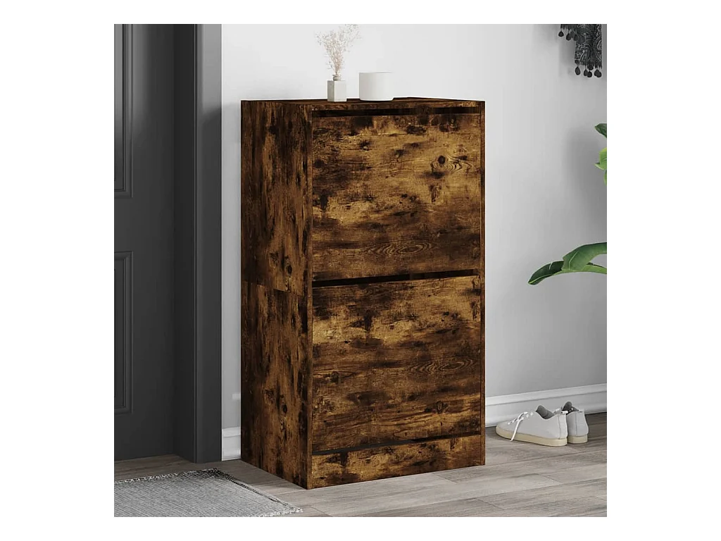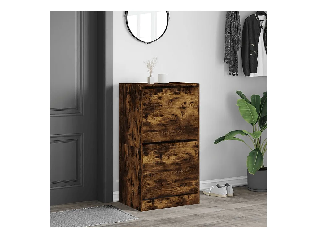 Mueble zapatero 2 cajones abatibles roble ahumado 60x42x108 cm ES218249