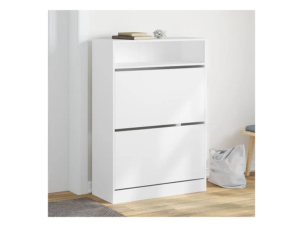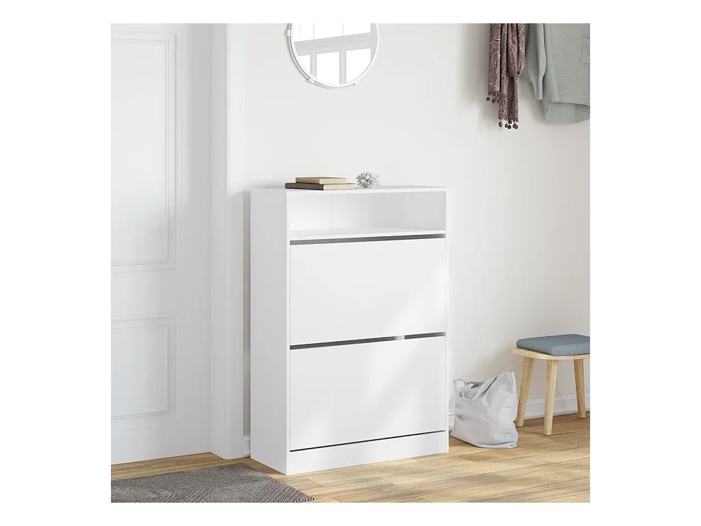 Mueble zapatero 2 cajones plegable blanco 80x34x116 cm