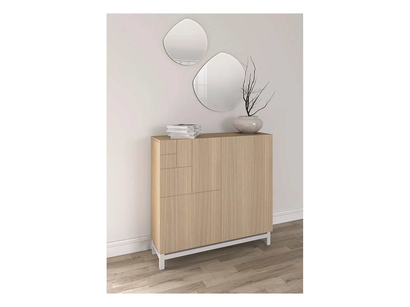 Mueble zapatero/armario - A89cm x L90cm x P29cm roble claro puertas blanco - Alice