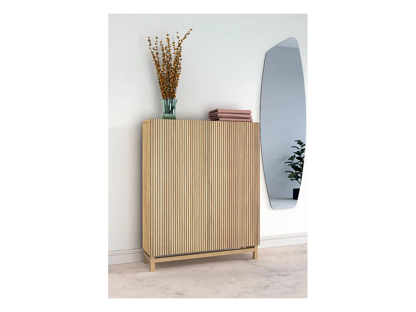 Mueble zapatero almacenaje - A87cm x L90cm x F27cm chêne puertas impresión vallado - Sunne