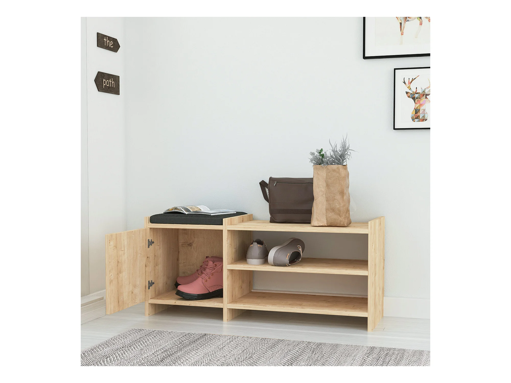 Mueble zapatero banco para zapatos rack con puerta y estantes (alto 44 /ancho 100 / fondo 35) en color (ROBLE) - Buyqualia