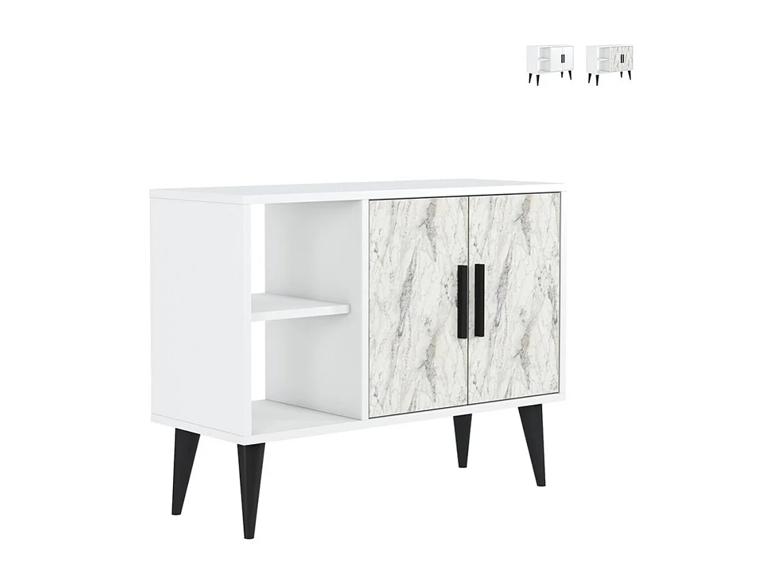 Mueble zapatero blanco moderno para recibidor y salón 90x35x70cm Arizona - Efecto mármol blanco
