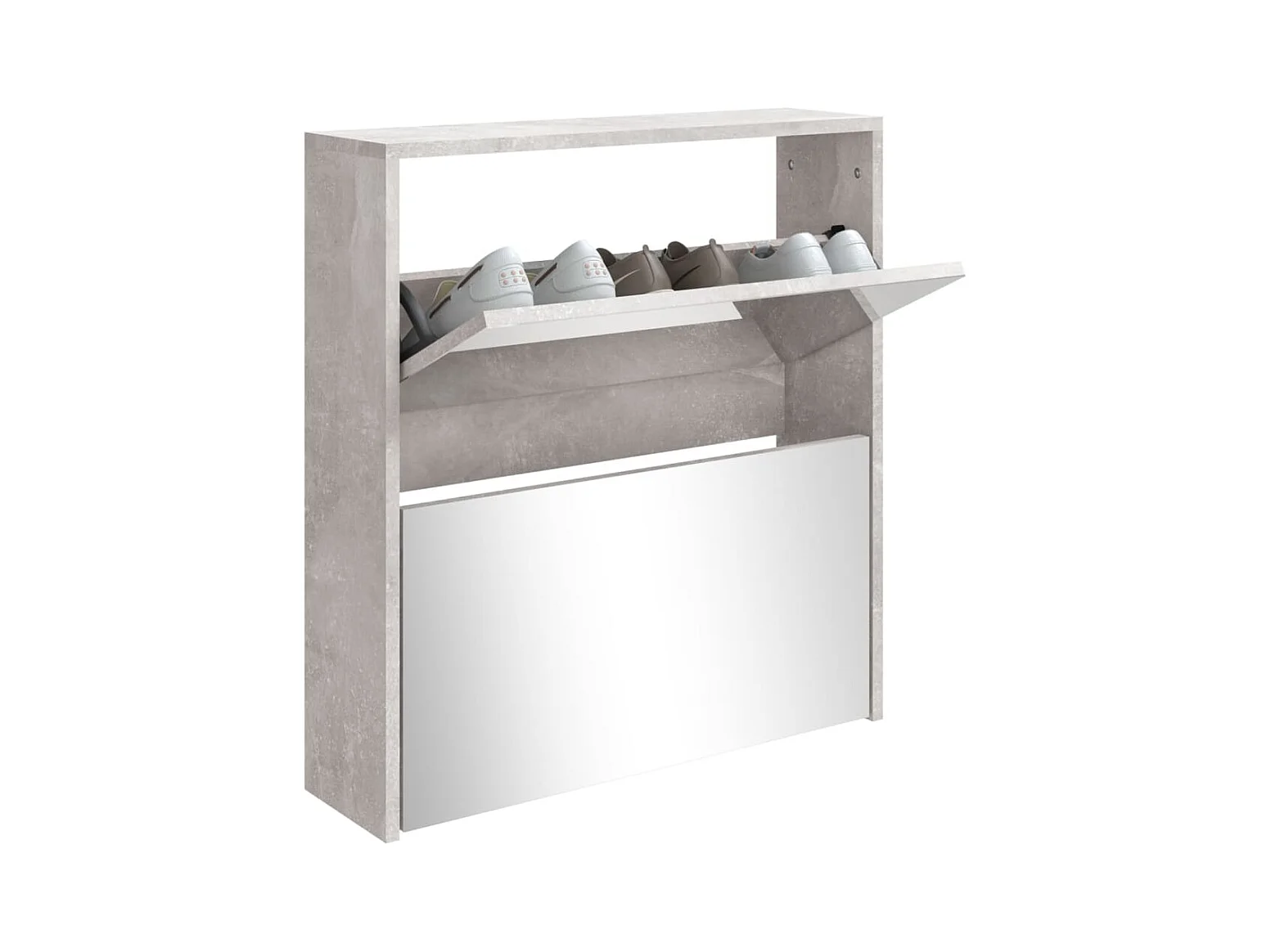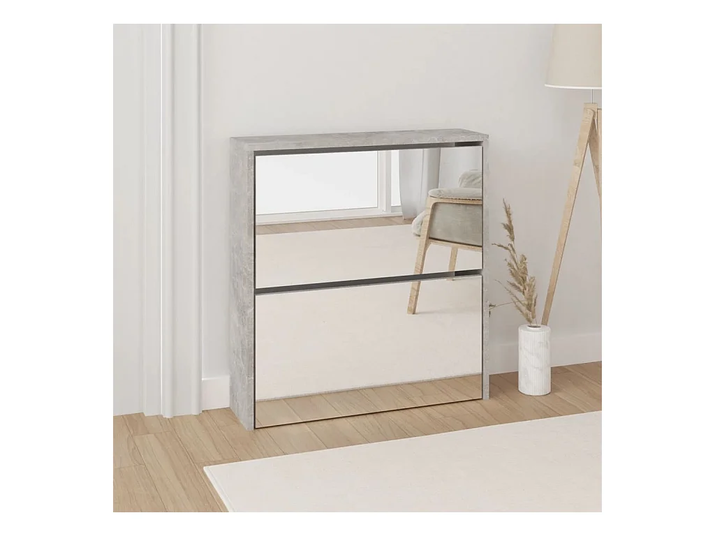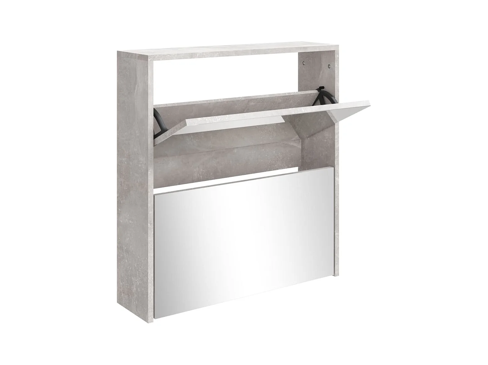 Mueble zapatero con espejo 2 niveles gris hormigón 63x17x67 cm ES359529