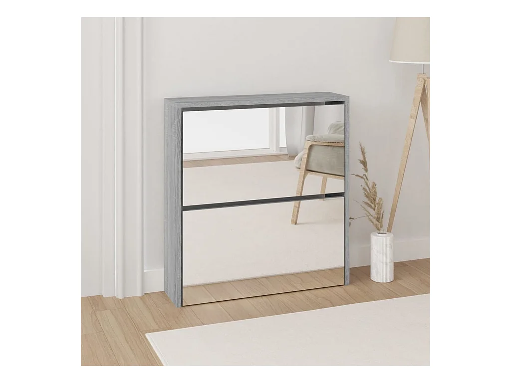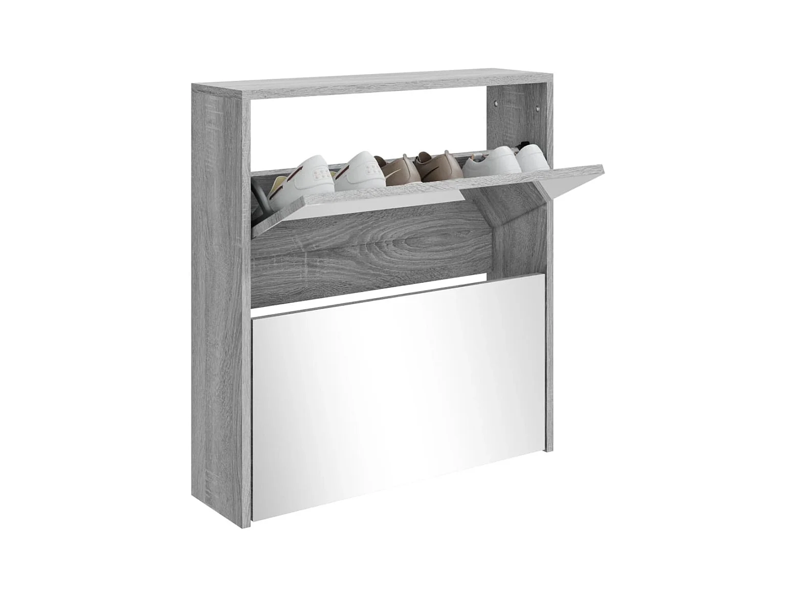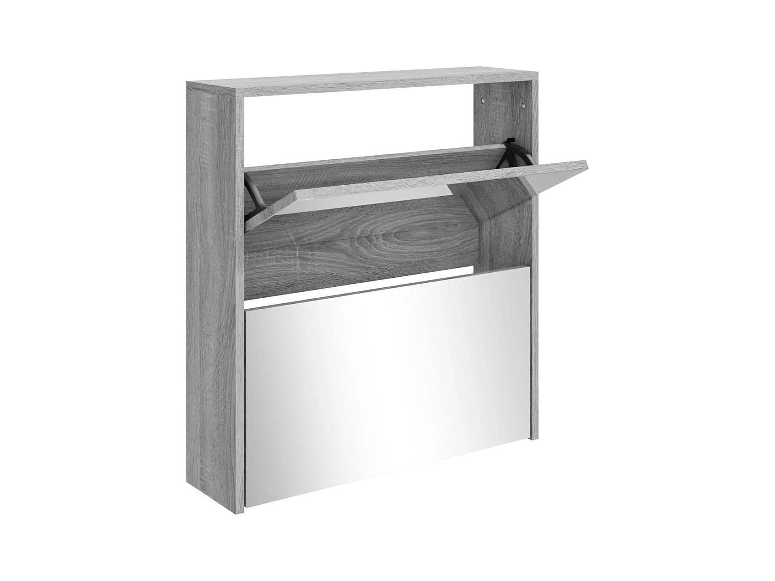 Mueble zapatero con espejo 2 niveles gris Sonoma 63x17x67 cm ES277316