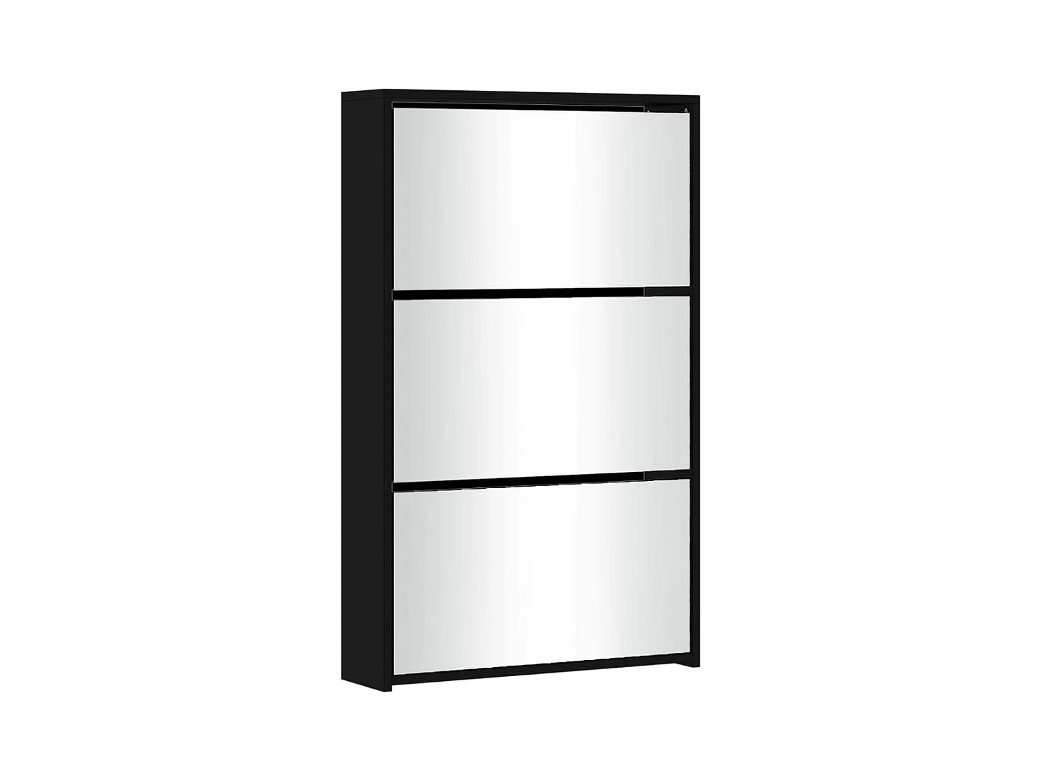 Mueble zapatero con espejo 3 niveles negro 63x17x102,5 cm ES274451