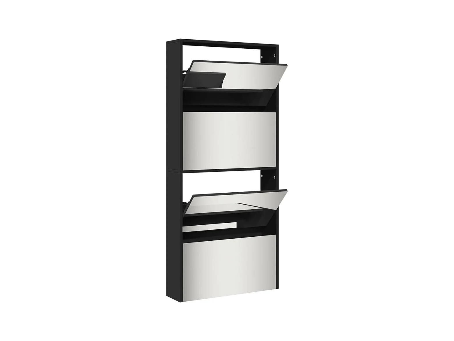 Mueble zapatero con espejo 4 niveles negro 63x17x134 cm ES921752