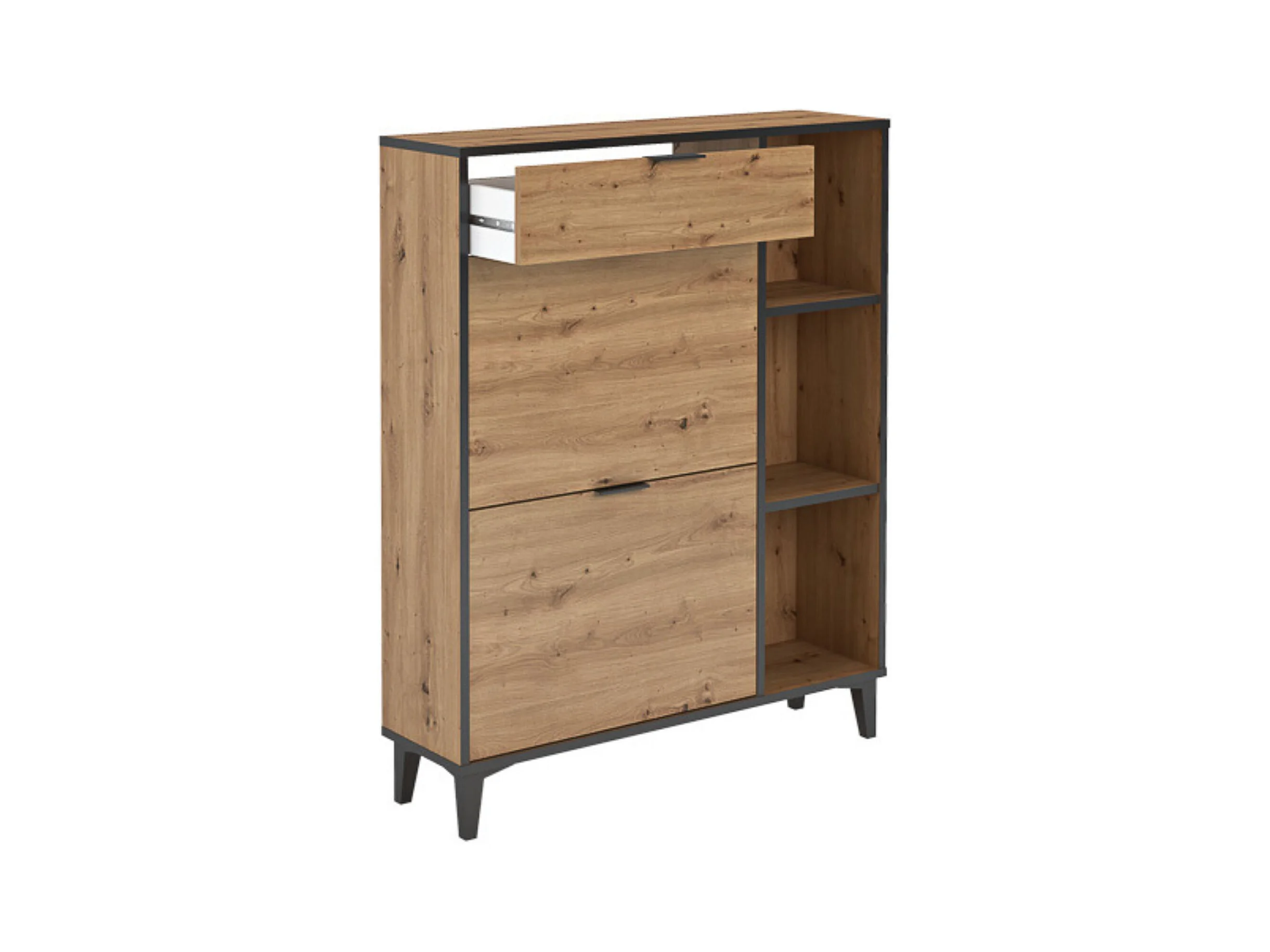 Mueble Zapatero de Entrada – 2 Puertas y 1 Cajón | Color Roble/Pizarra | 110 x 90 x 24,5 cm