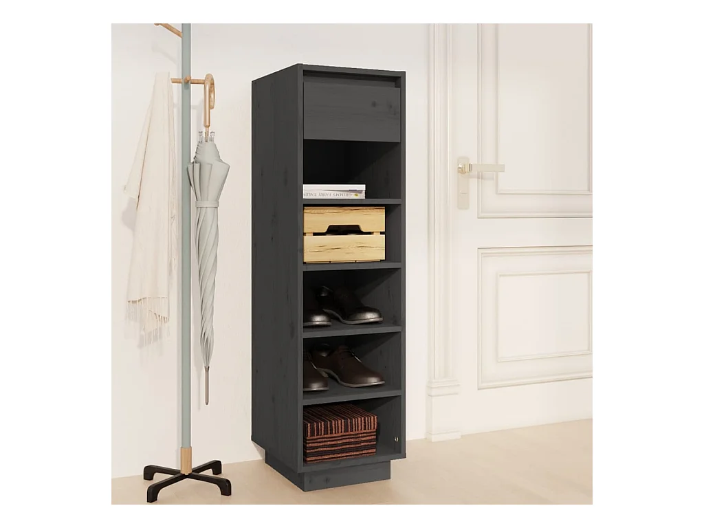 Mueble zapatero de madera maciza de pino gris 30x34x105 cm ES665472