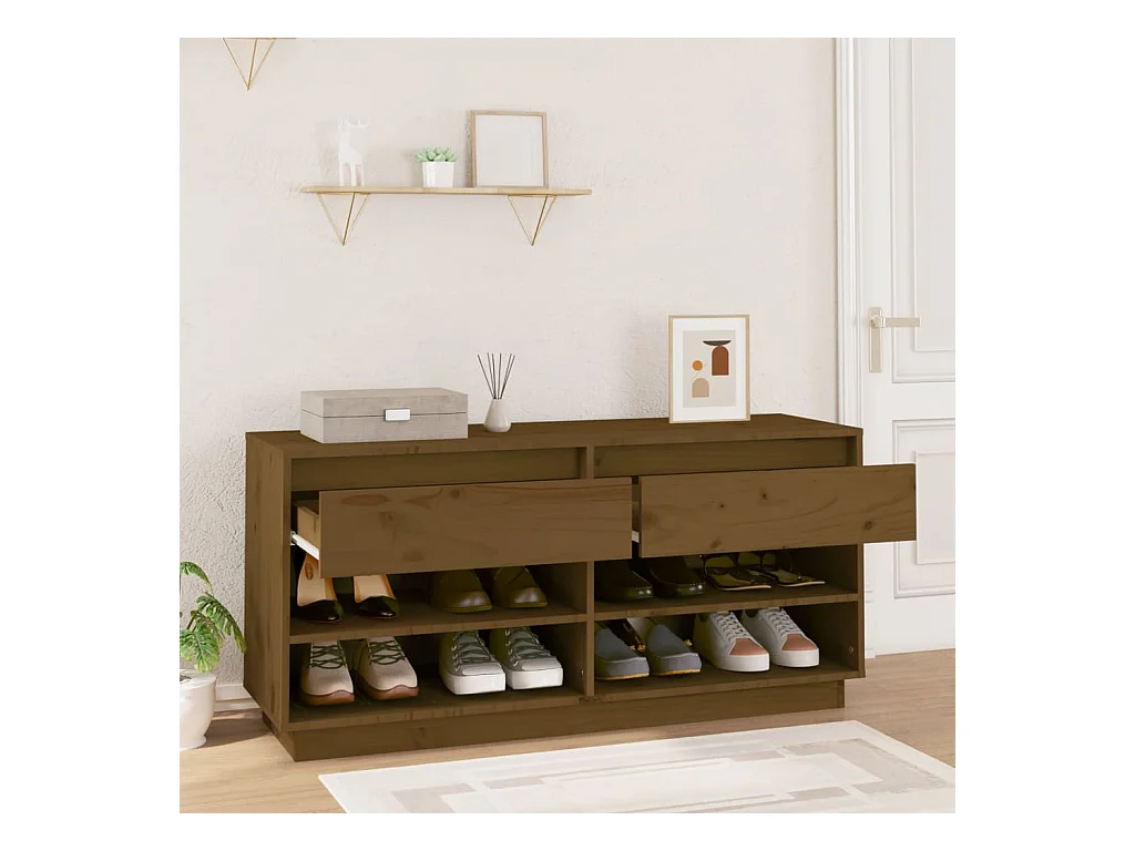 Mueble zapatero de madera maciza pino marrón miel 110x34x52 cm ES534822