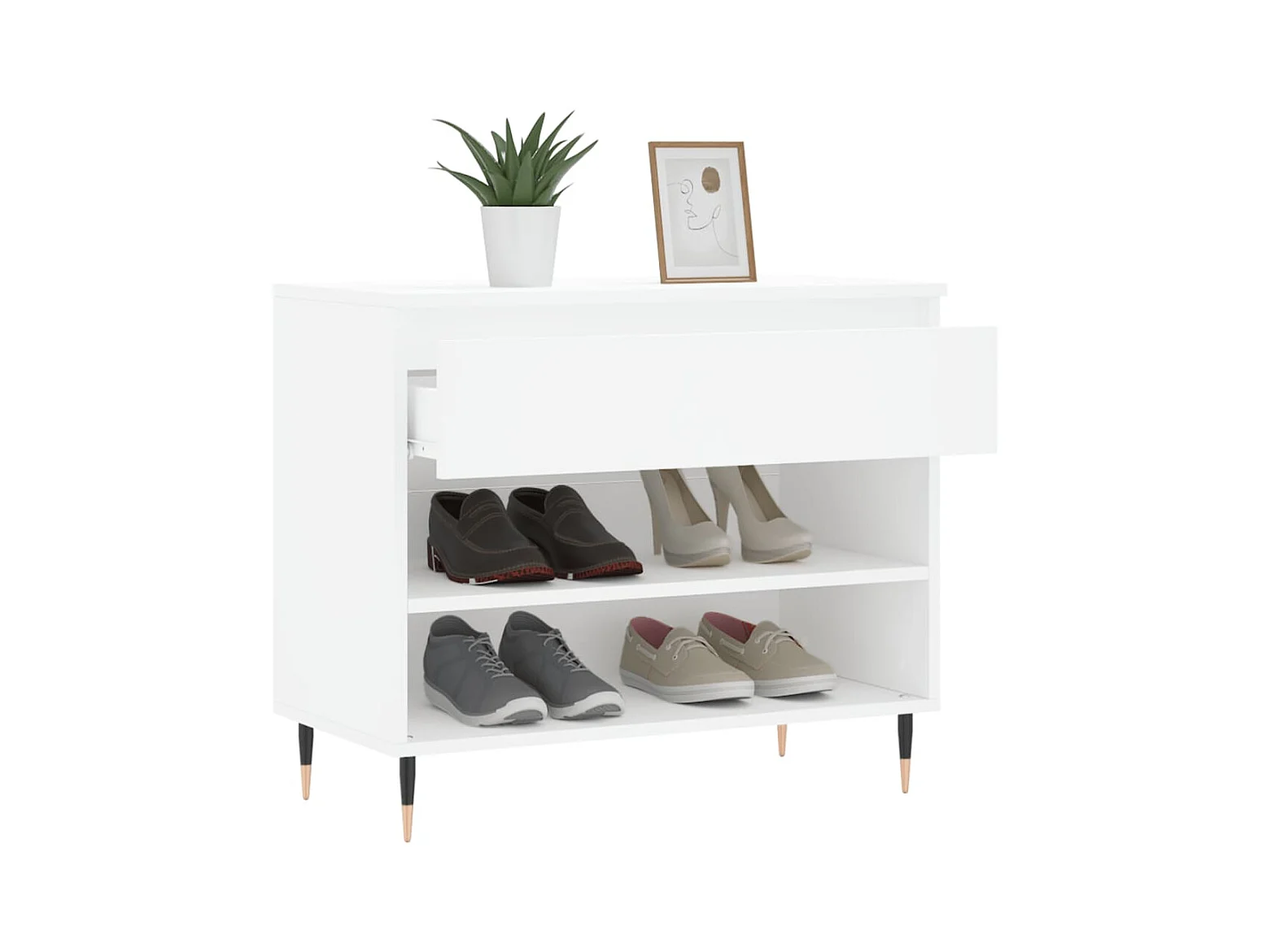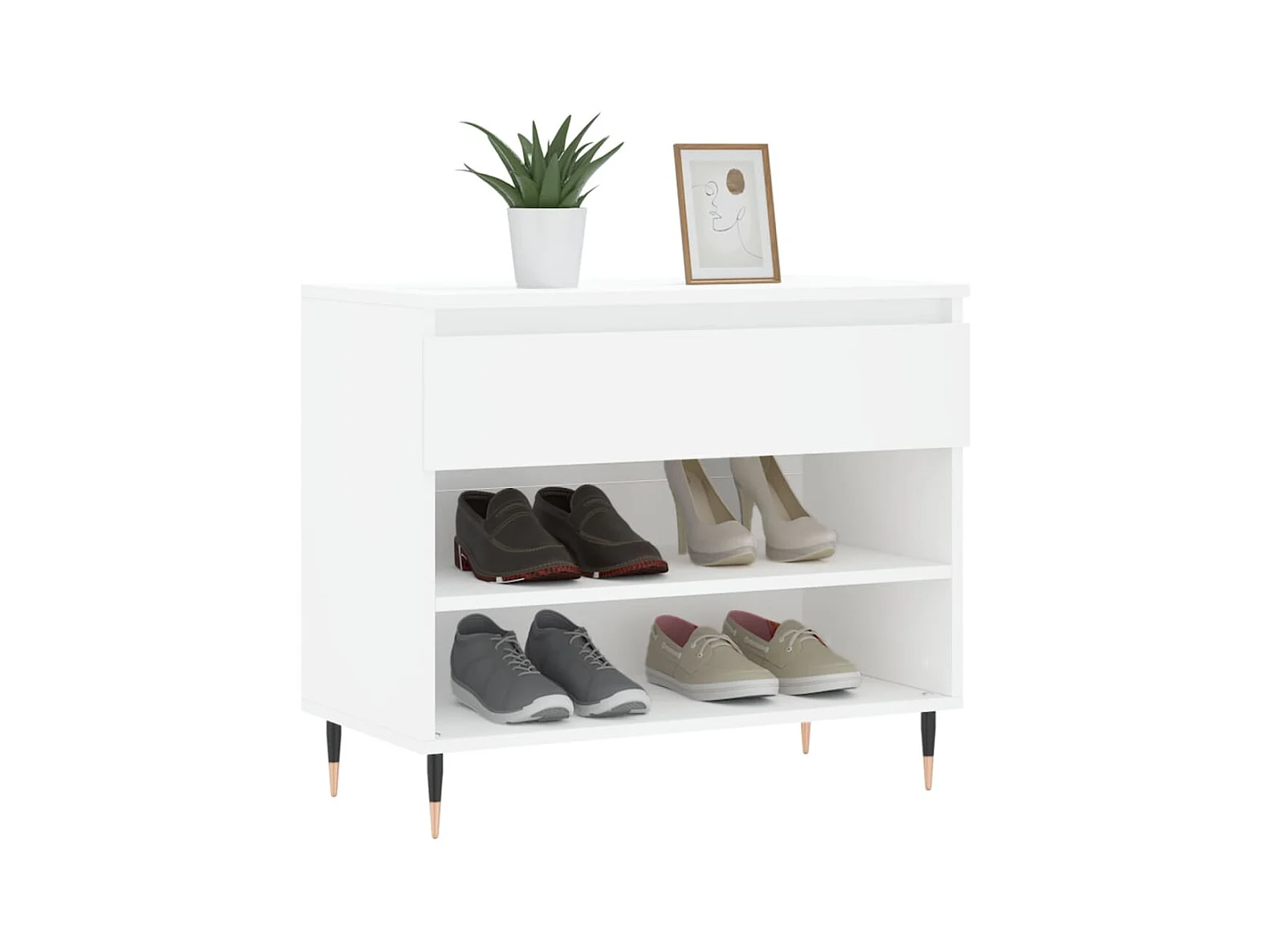Mueble zapatero madera contrachapada blanco brillo 70x36x60 cm ES557811