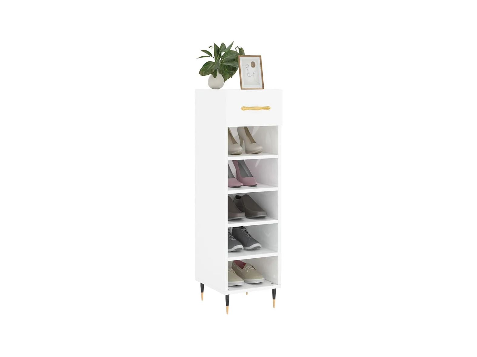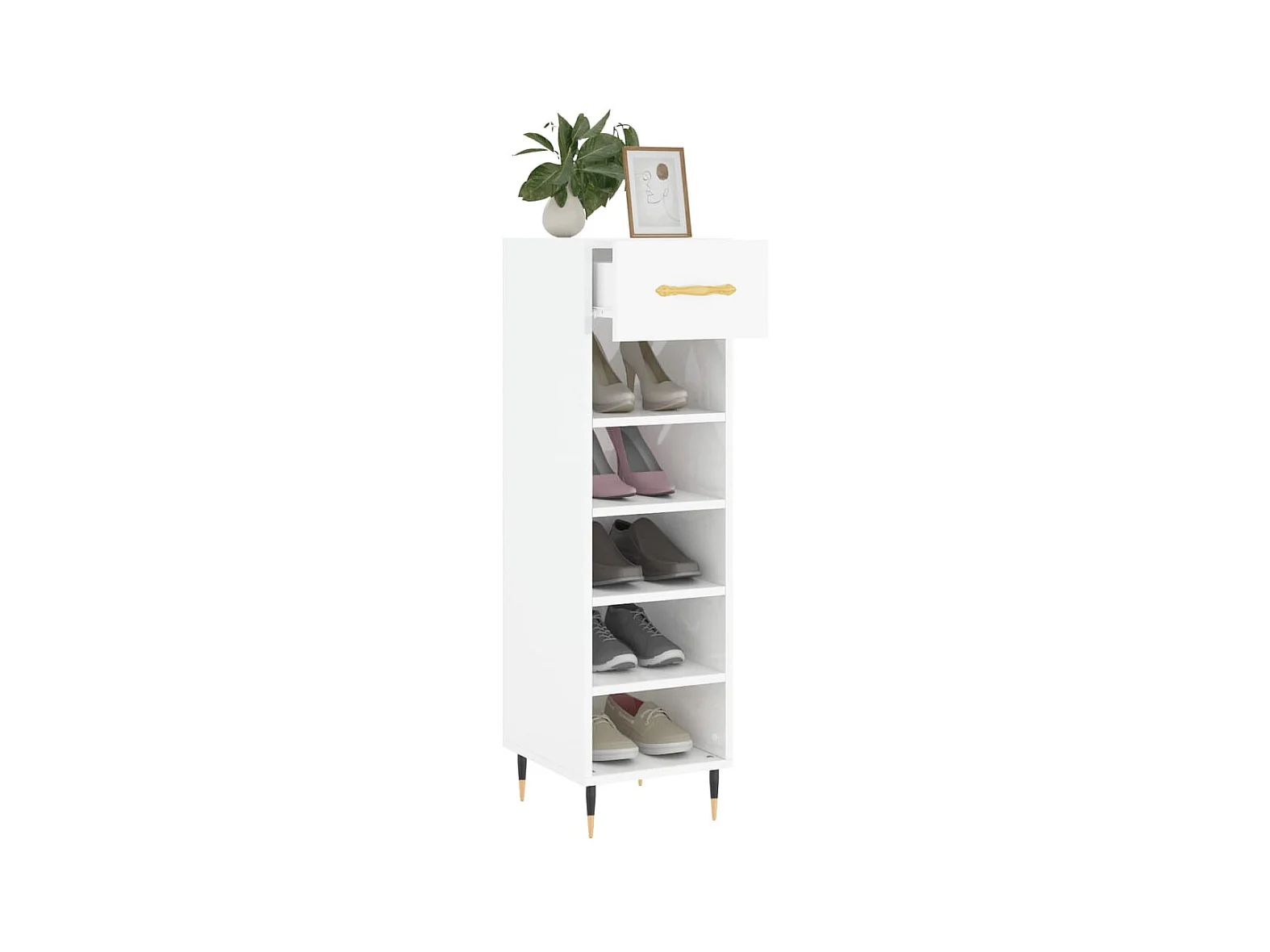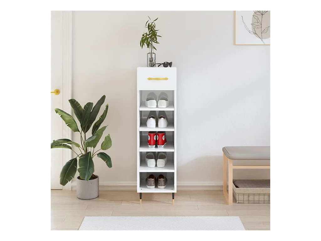 Mueble zapatero madera contrachapada blanco brillo 30x35x105 cm ES489297