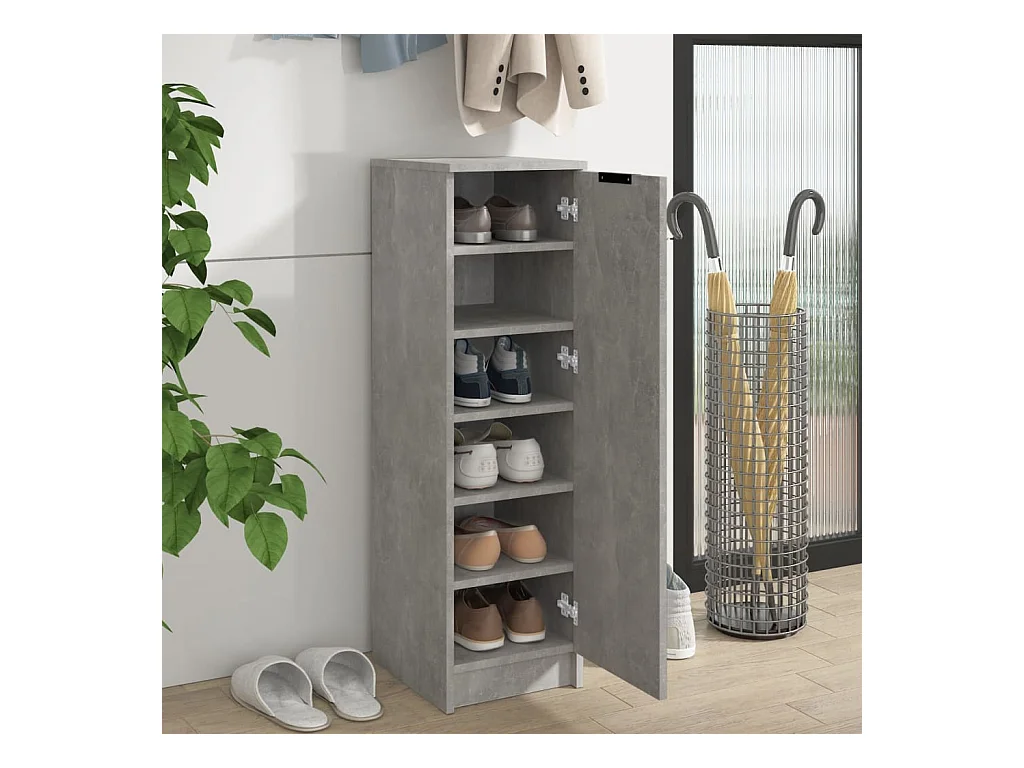 Mueble zapatero madera contrachapada gris hormigón 30x35x100 cm ES422673