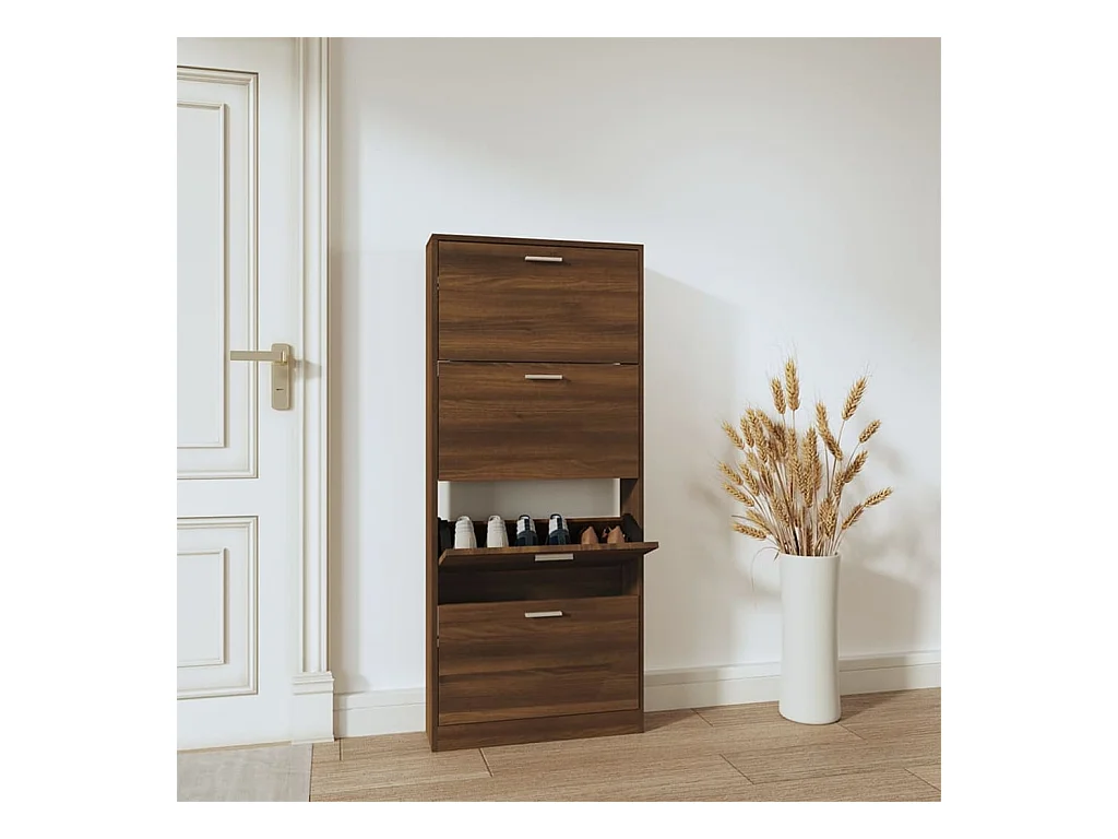 Mueble zapatero madera contrachapada marrón roble 59x17x150 cm ES359033