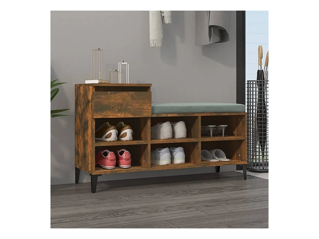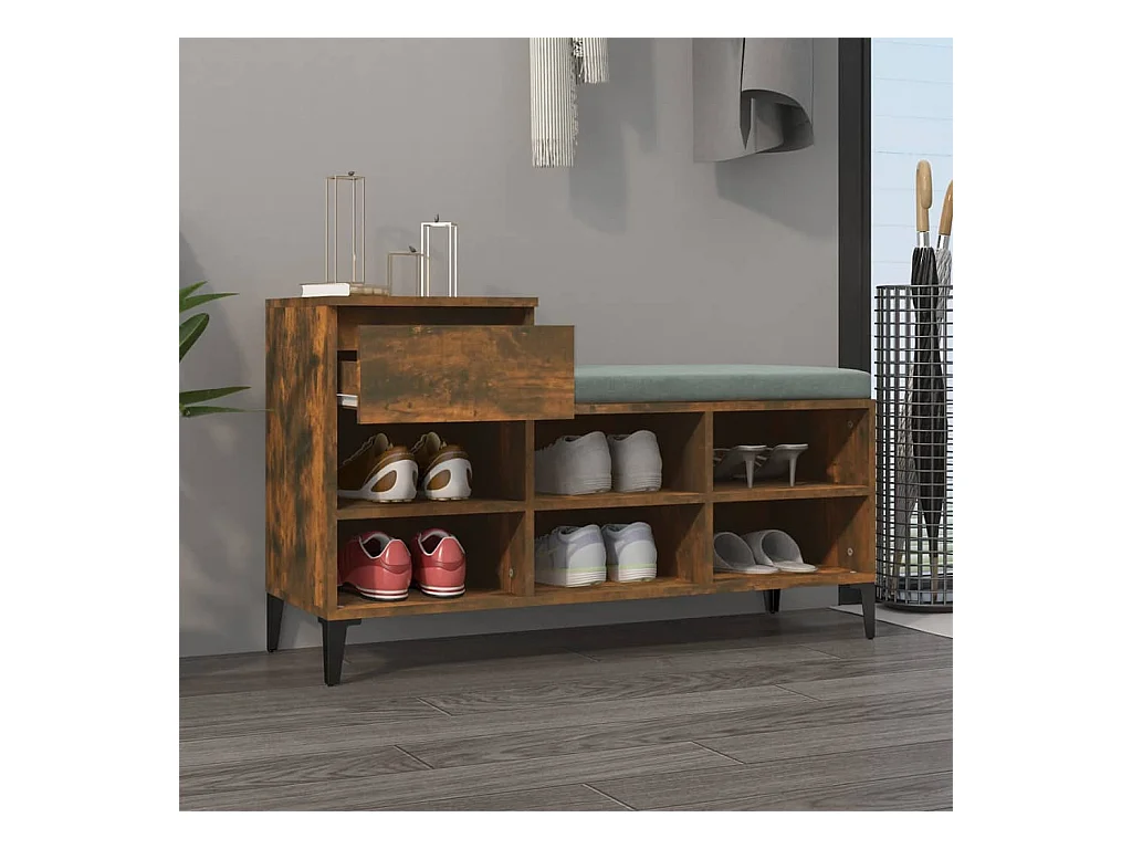Mueble zapatero madera contrachapada roble ahumado 102x36x60 cm ES871687