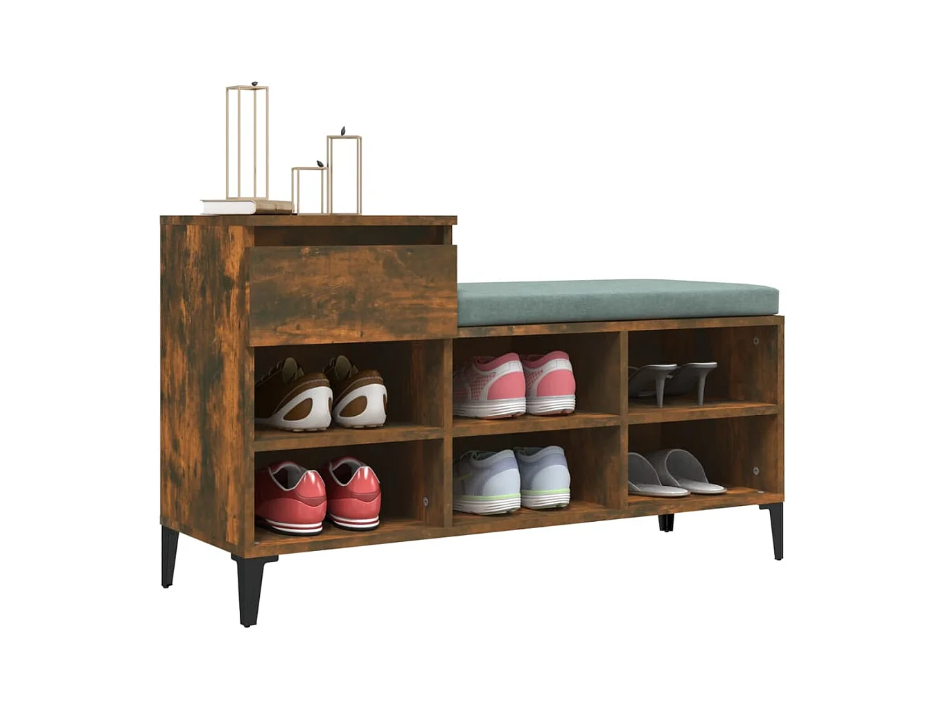 Mueble zapatero madera contrachapada roble ahumado 102x36x60 cm ES714303