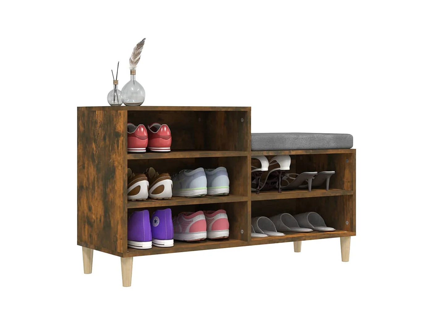 Mueble zapatero madera contrachapada roble ahumado 102x36x60 cm ES714303